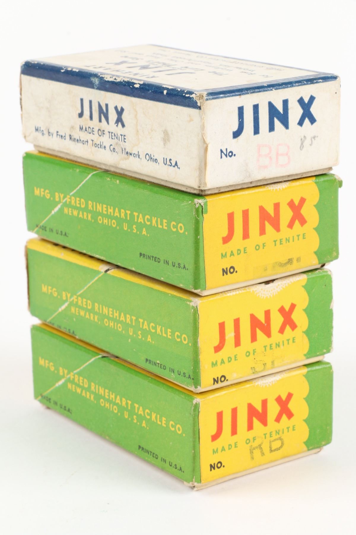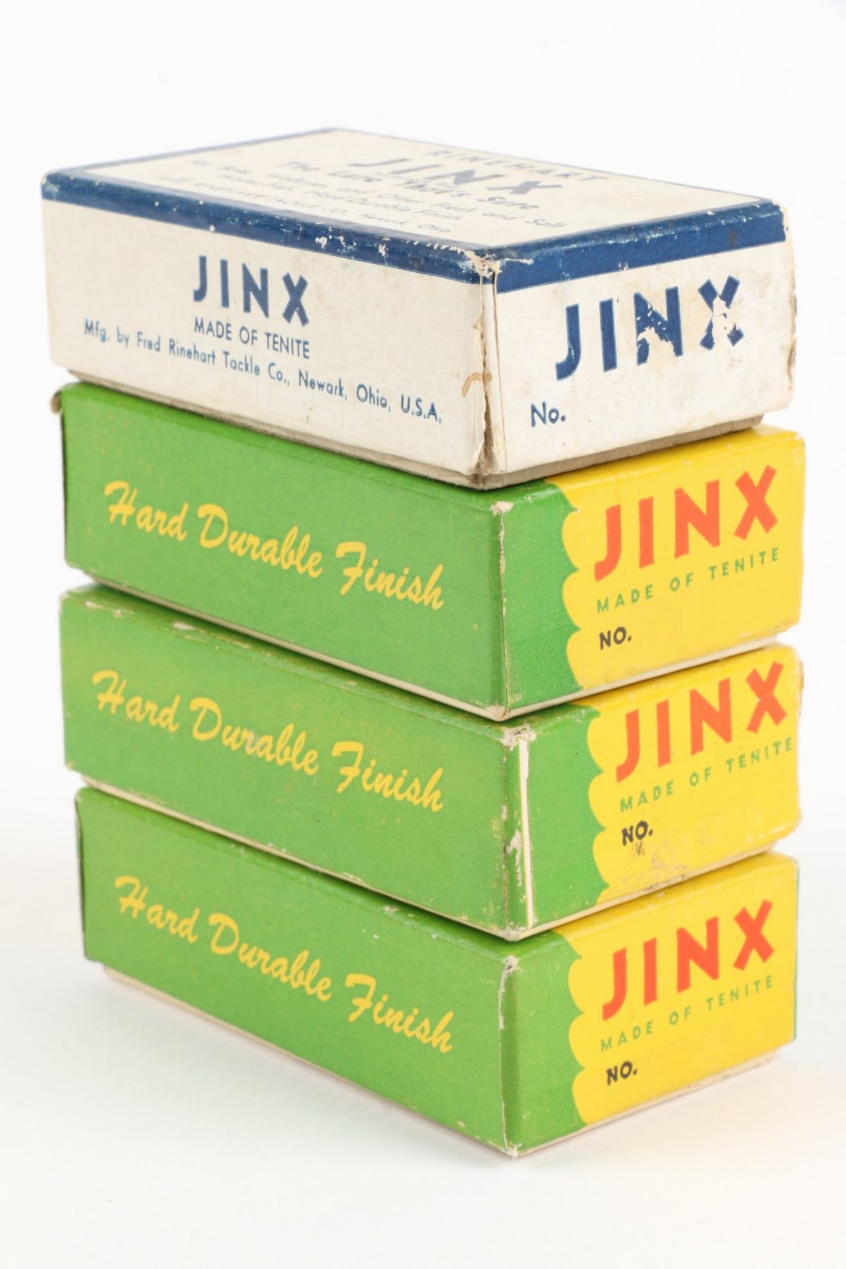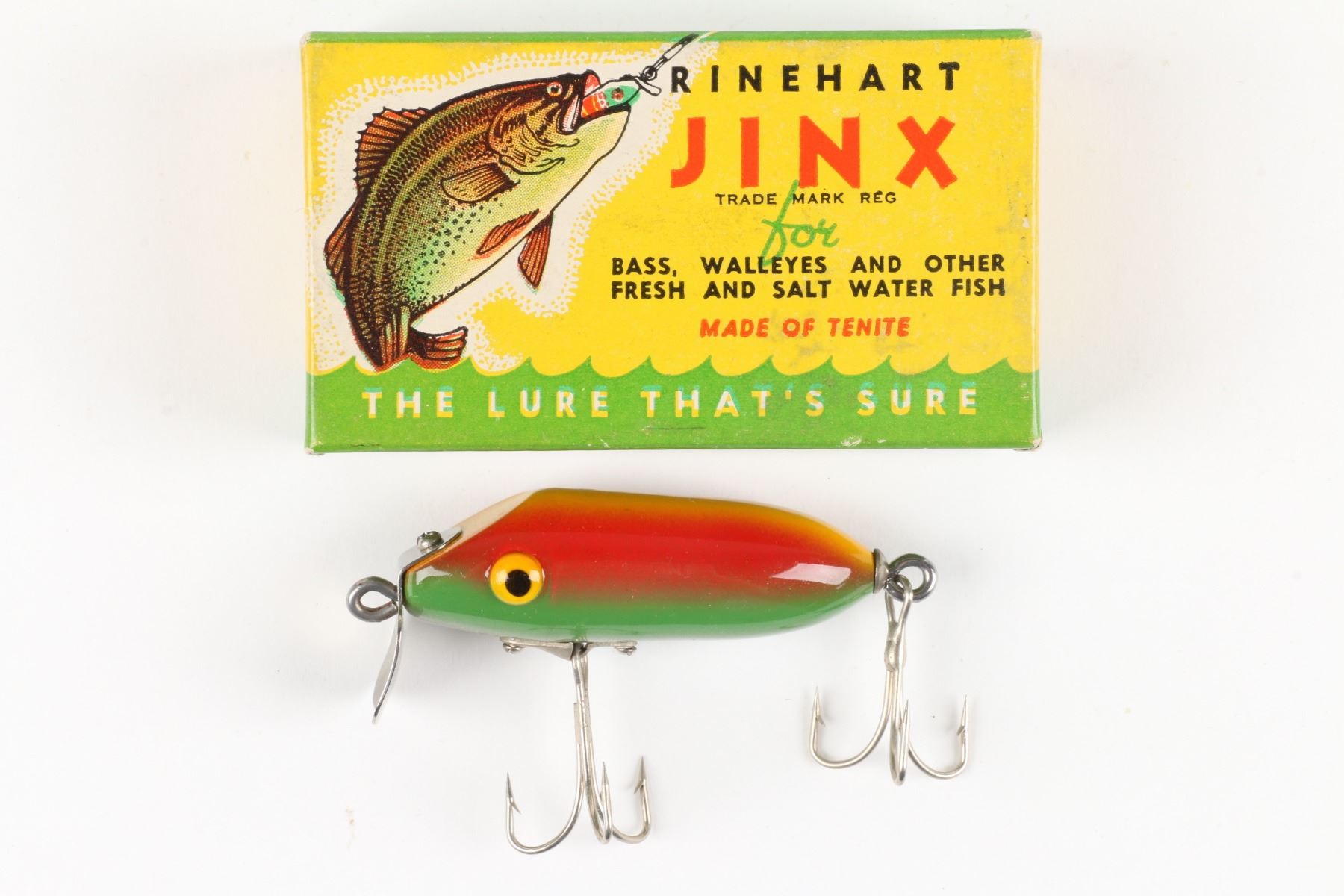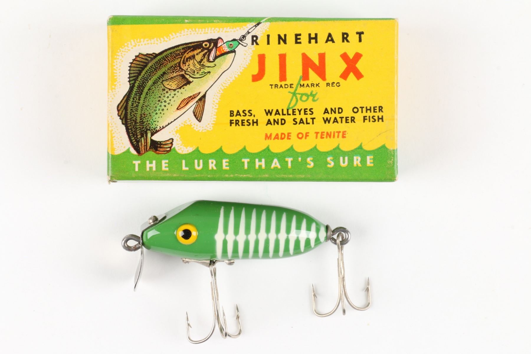 Fred Rinehart Tackle Co., United States. 1940s. 4 Boxed. Material: Tenite. Quantity: 5. Grade: G. 3.5" boxes Est. $125-150.