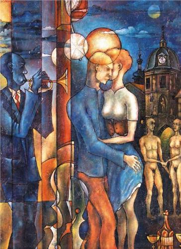 BLUE DANCE II - Oil - on board - <Br>31 ins. X 23.5 ins.