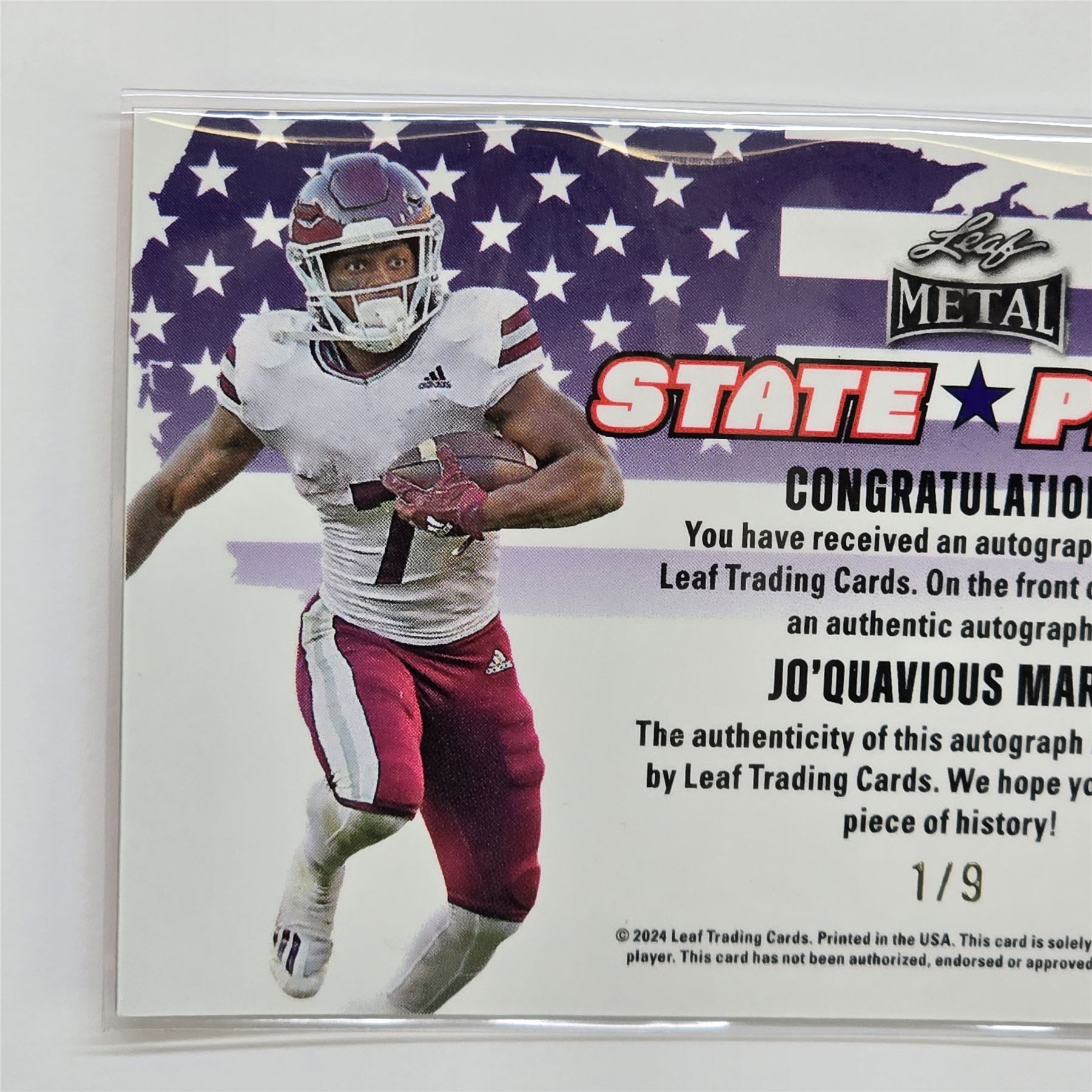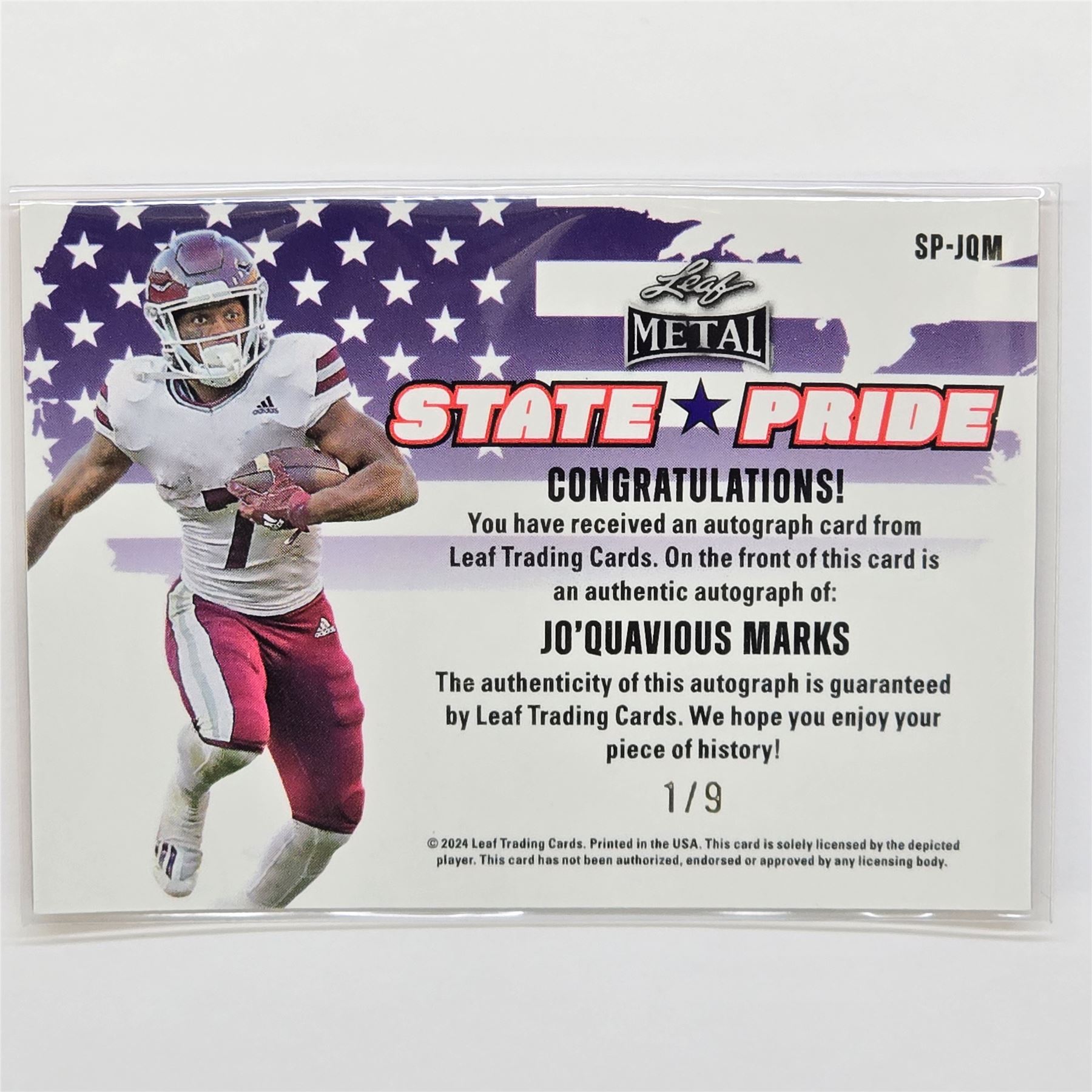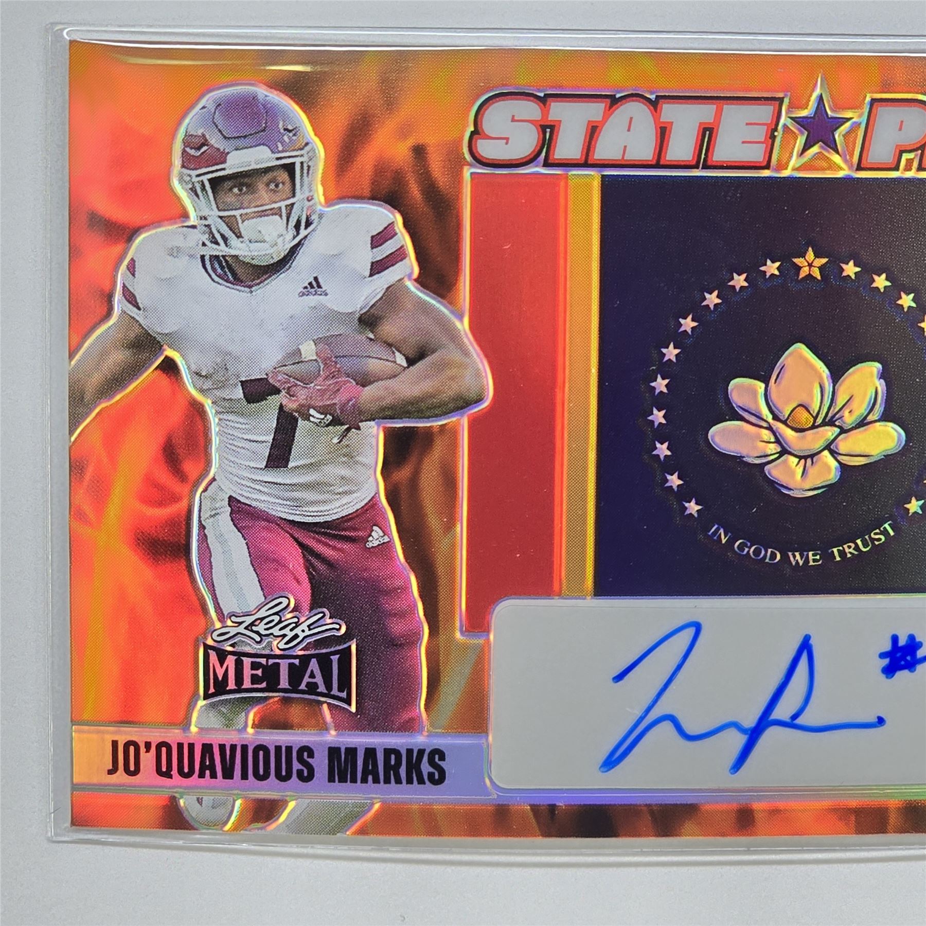 2024 Leaf Metal Autographed Prismatic Fire & quot;State Pride& quot; Jo'Quavious Marks Card # SP-JQM, 1/9