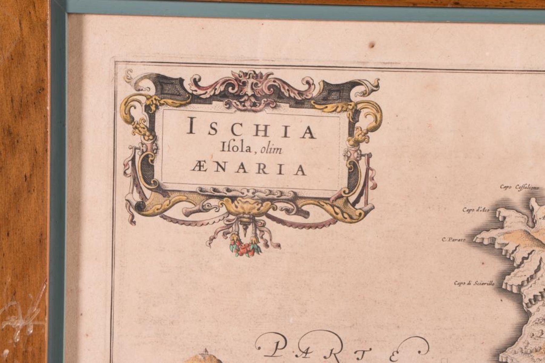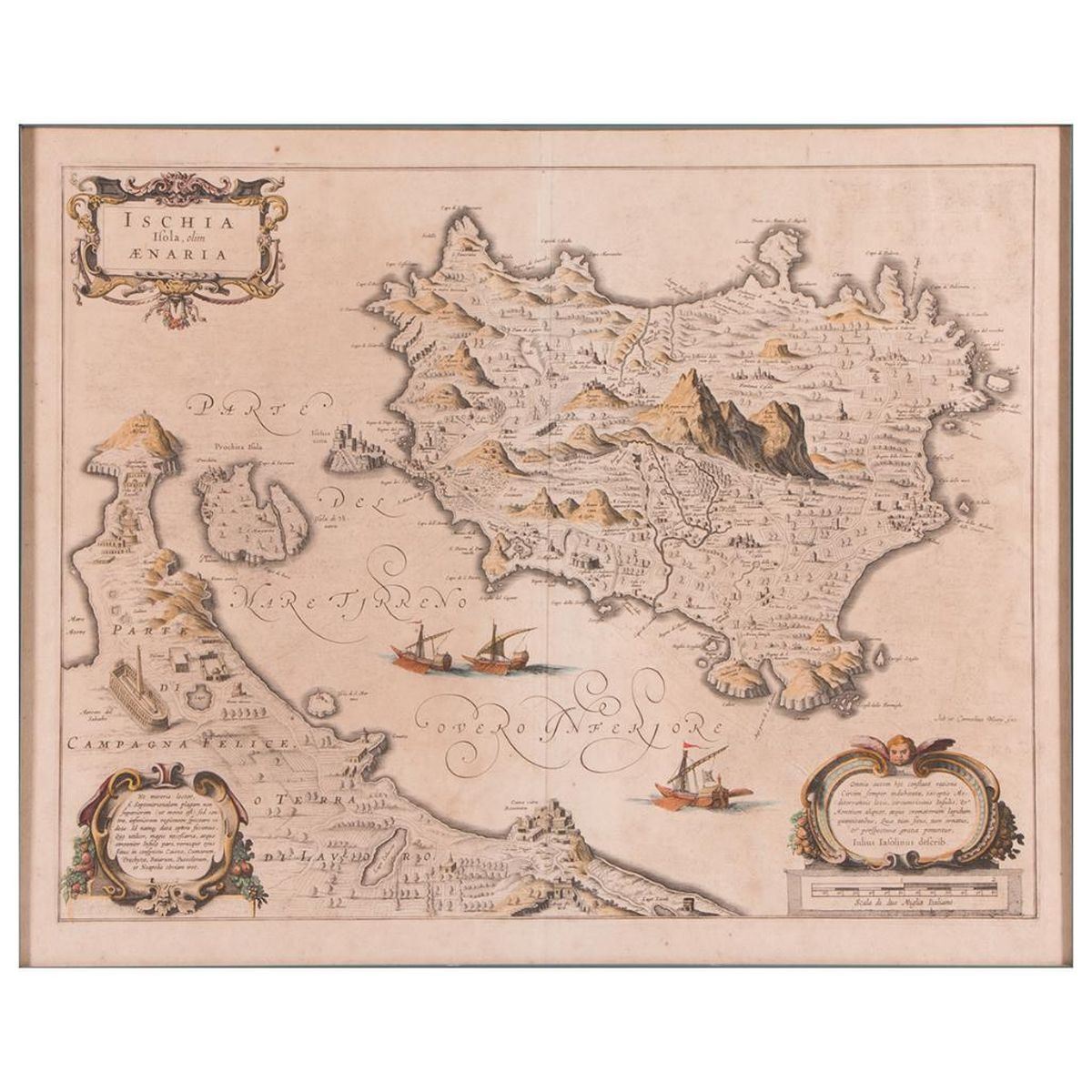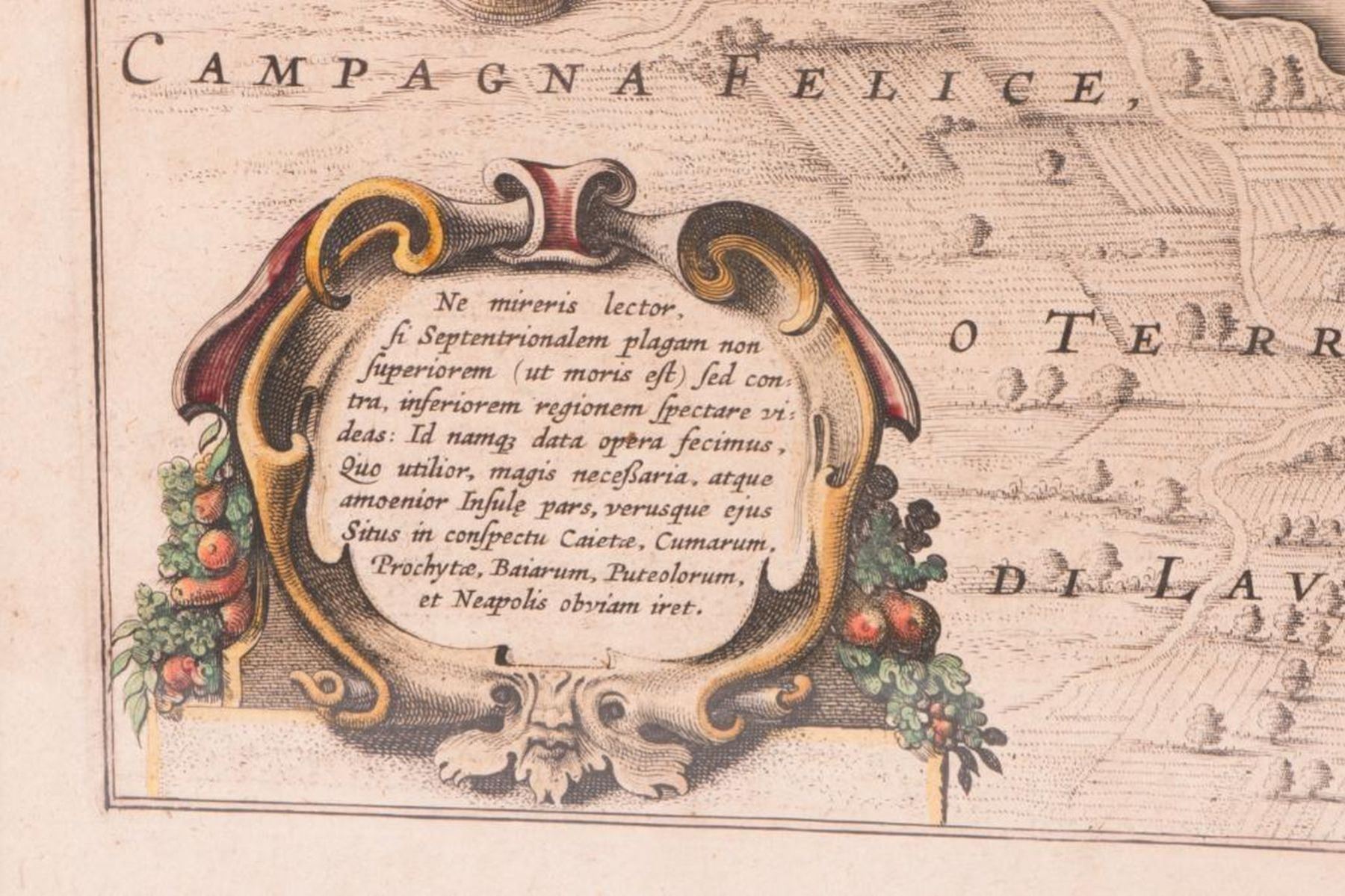 Artist: Joan BLAEU (1599-1673). Title: View of the Gulf of Naples. Size: 16 1/2 x 20 1/2 in. Frame: 20 x 24 in. Condition: lite staining and toning to paper.. Created: c.1635/60. Medium: Hand colored engraving.