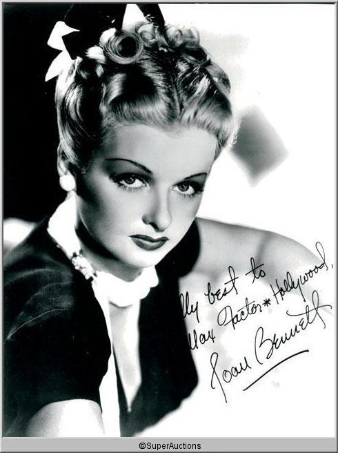 Joan Bennett from The Max Factor Collection / (1) 8 x 10 Autographed Negative / "My Best to Max Factor * Hollywood, Joan Bennett" / (1) 8 x 10 Black & White Photograph
