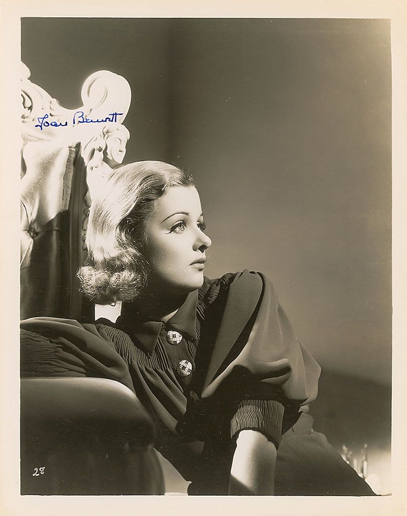 Vintage glossy 8 x 10 photo of Bennett reclining on a cushion, signed in fountain pen. In fine condition, with a couple light creases near top of image.