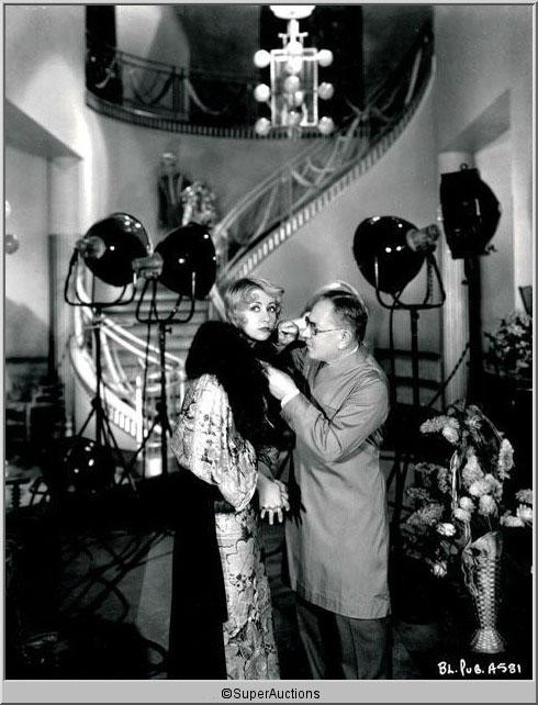 Joan Blondell from The Max Factor Collection / (1) 8 x 10 Negative No. Bl.Pub.A581 of Joan Blondell On-Set Posing while Max Factor Applies Lipstick Make-Up / (1) 8 x 10 Black & White Photograph