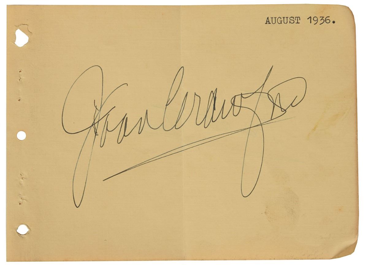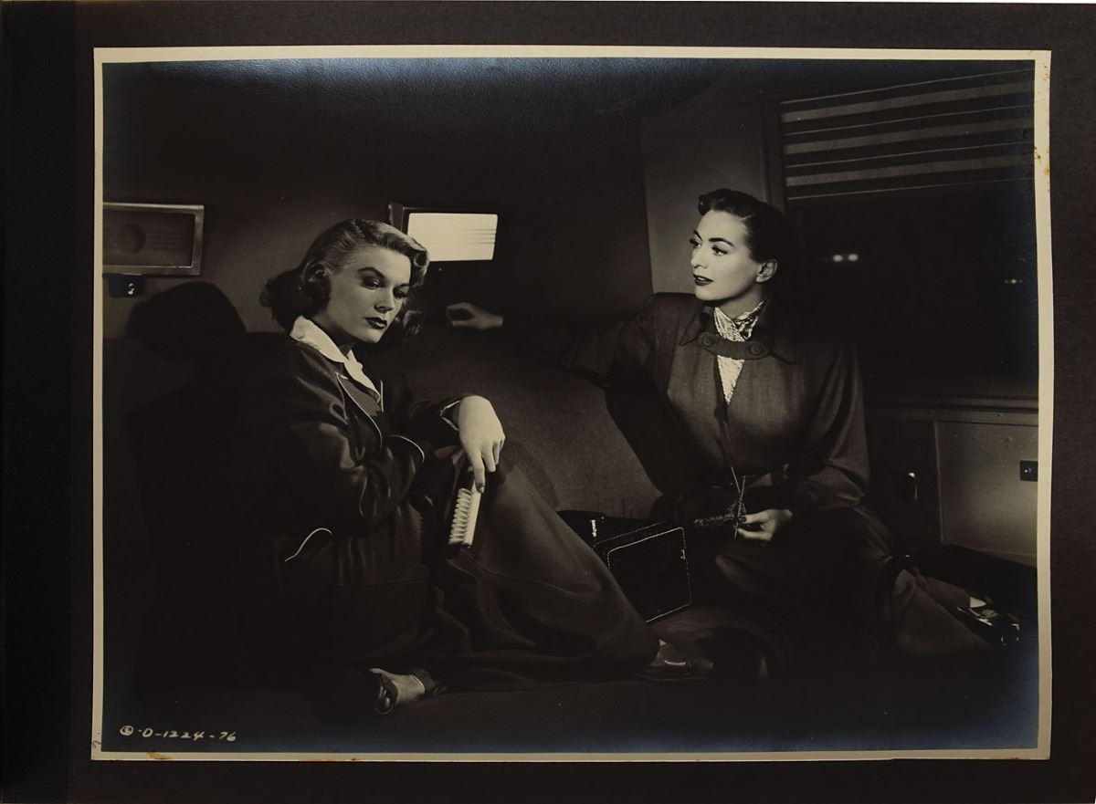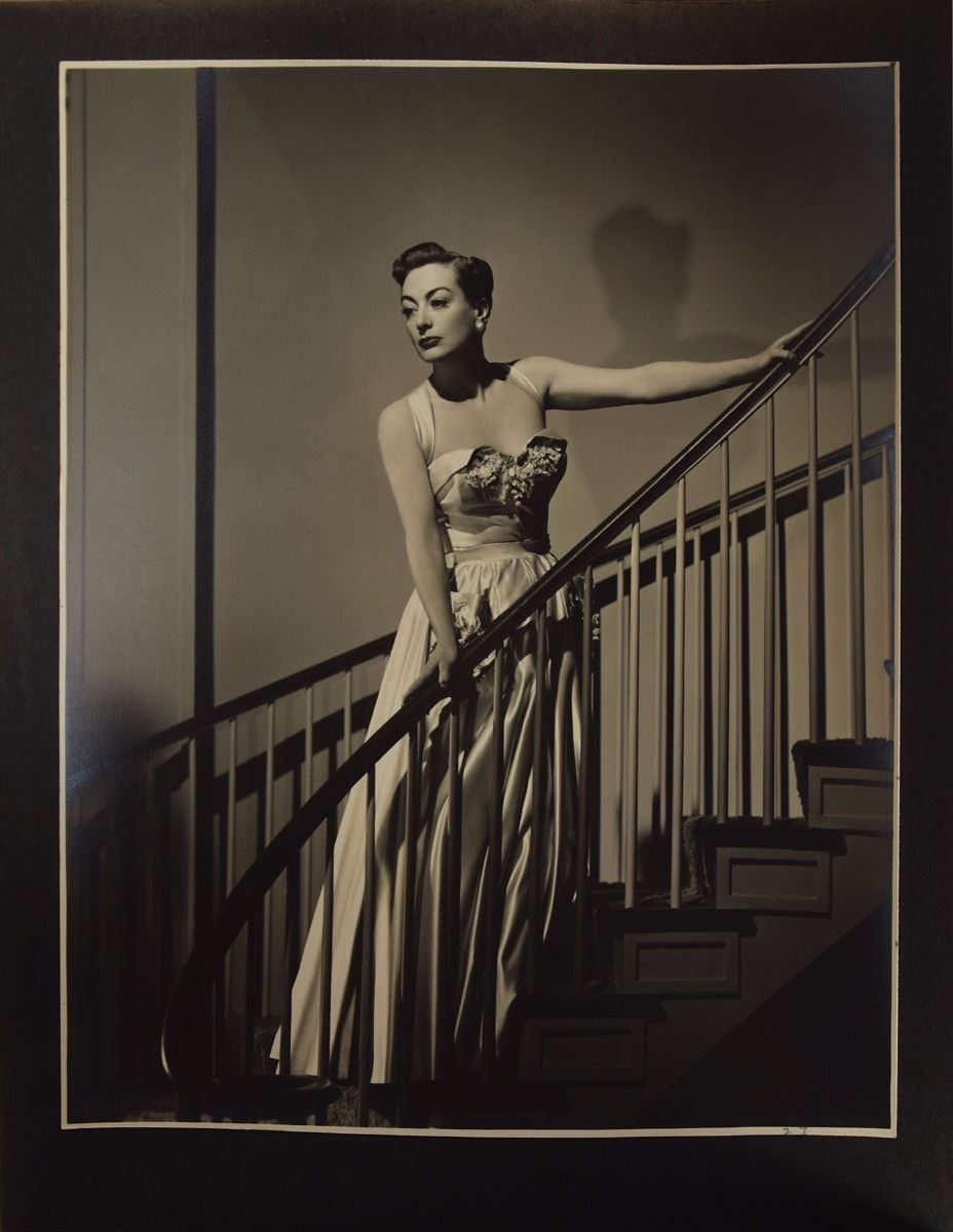 Wonderful vintage scrapbook from Crawford's 1950 film Harriet Craig, gilt stamped on the front and spine with the title, containing more than 60 matte-finish 7.5 x 9.5 stills from the film; a vintage fountain pen signature of Crawford is also loosely laid in. In fine condition, with curling to edges of the photos.
