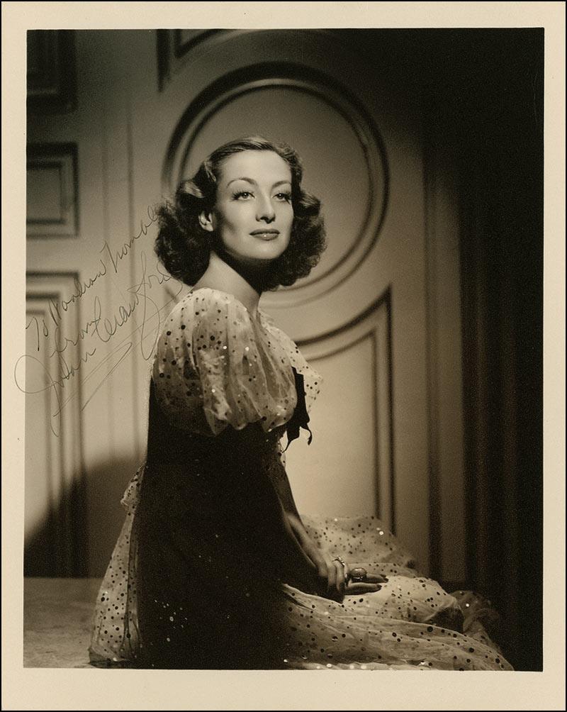 Gorgeous vintage matte-finish 8 x 10 photo, signed and inscribed in fountain pen “To Woodrow Trombley from Joan Crawford.” In fine condition, with all writing a shade light but completely legible. Pre-certified PSA/DNA and RRAuction COA.