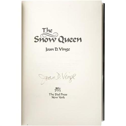 <B>Joan D. Vinge: Signed </B></I><B><I>The Snow Queen</B></I></B></I> (New York: The Dial Press, 1980), first edition, 536 pages, light-blue binding with navy-blue-cloth spine and silver lettering, 8vo (9.25” x 6”), dust jacket (in protective sleeve). Acclaimed science-fiction author Joan D. Vinge (b. 1948) won a Hugo Award for this novel, the first in her “Snow Queen Cycle.” The title page is signed <I>“Joan D. Vinge”</B></I>. The book is in fine condition; the dust jacket is very good with minor wear.<BR><BR><b>Shipping:</b> Books & Catalogs (<a target="_blank" href="http://www.heritageauctions.com/common/shipping.php">view shipping information</a>)