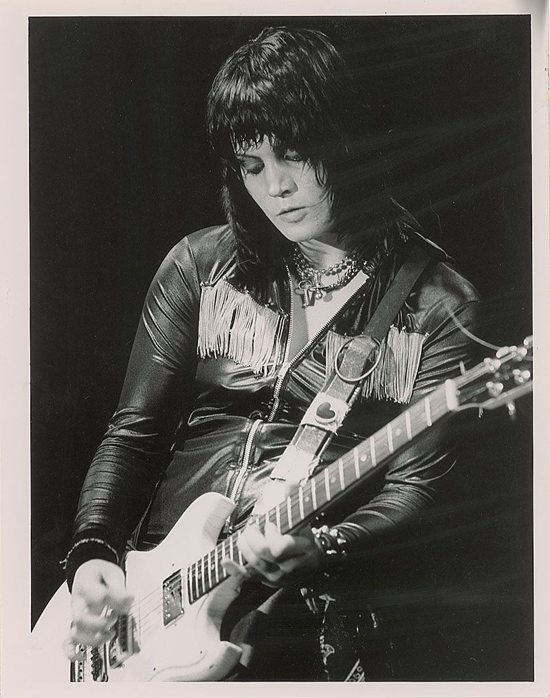 Original unsigned satin-finish 11 x 14 photo of Jett playing guitar on stage, by Richard Creamer. A small tear to the upper right border, otherwise fine condition. Provenance: Richard Creamer Estate. Creamer was a famous Rolling Stone photographer very active and well known in the 1970s Los Angeles Rock scene. The collection of Creamer photos offered in this auction were kept in his personal collection and several appeared in magazines.