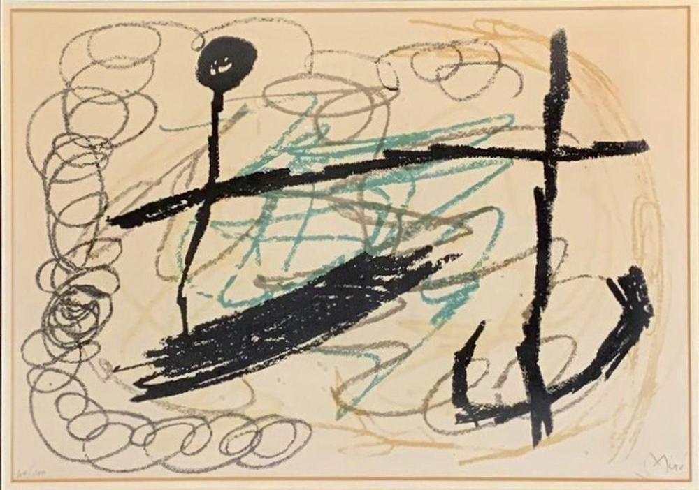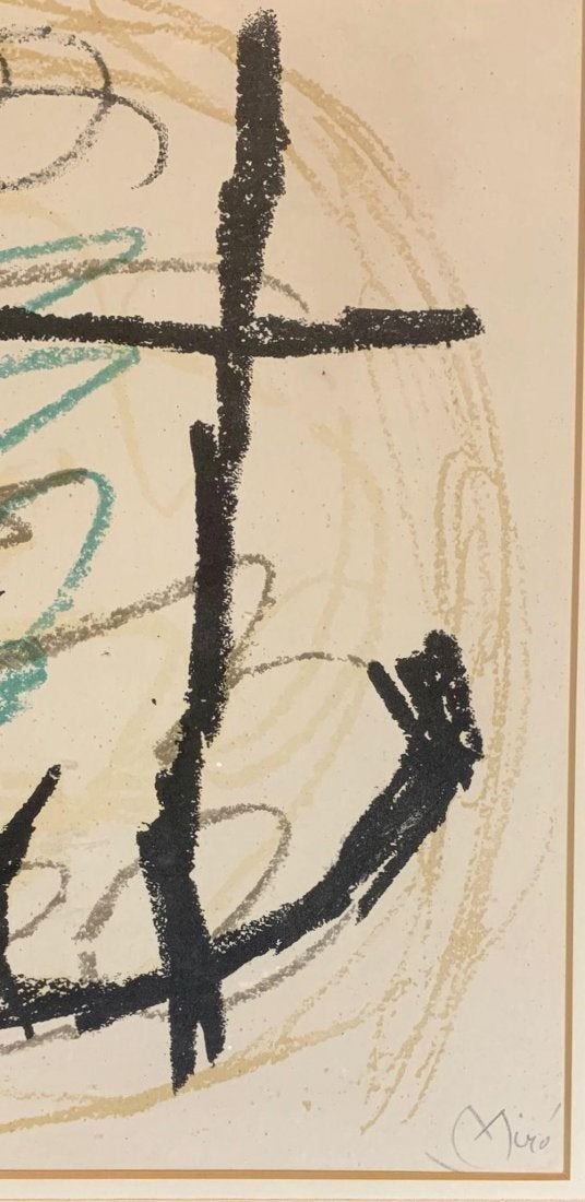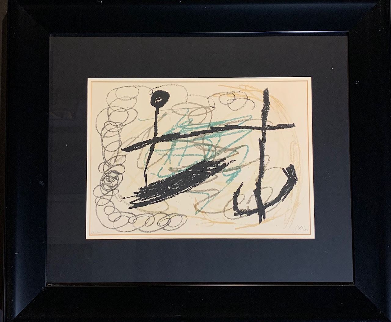 Joan Miro (1893-1993) Original color lithograph, "Obra Inedita Recent." Hand signed in pencil lower right, numbered 49/100 lower left, 1964. Sheet 12" x 17" framed 29.5" x 25.5"