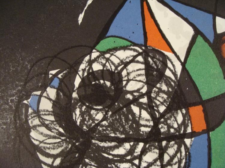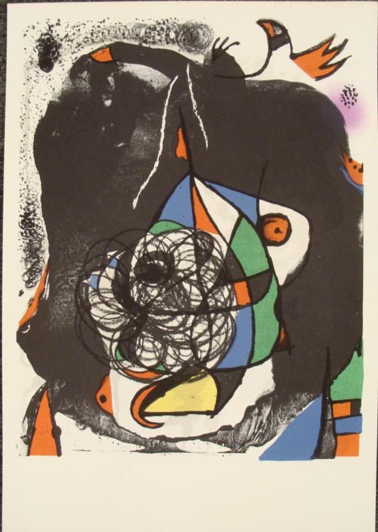 This terrirific print is from the short Revolution series. Artist: Joan Miro Title: Revolution II Paper Size: 14 3/4 x 10 3/16 inches.