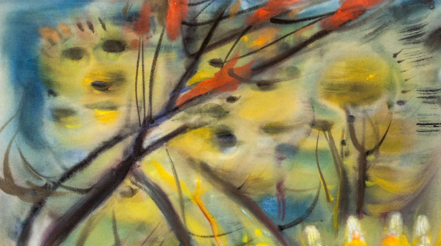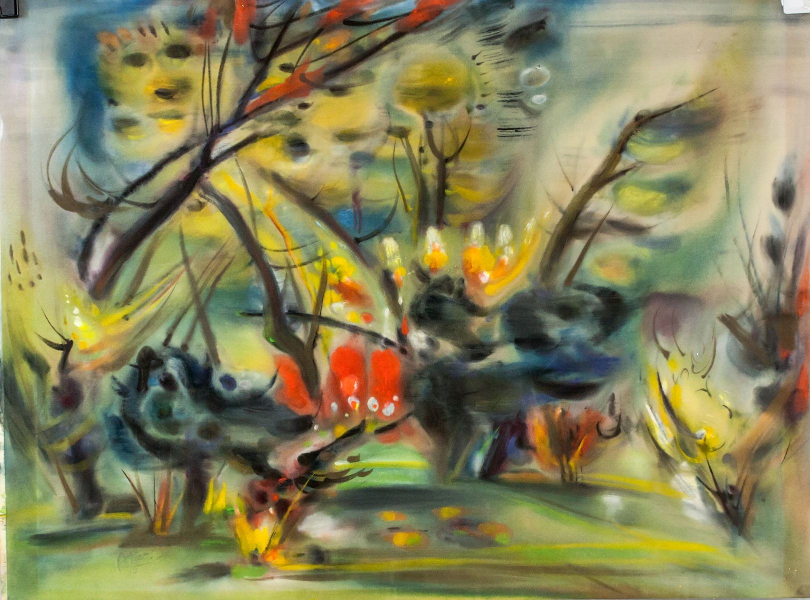 Oil on suede paper. Featuring abstract composition. Signed "Miro" in the bottom left corner with "27" inscribed beneath the signature. "La Cafe Paris" is inscribed faintly on verso. Attributed to Joan Miro (1893-1983, Spanish). 51 x 69 cm (20 x 27 in)