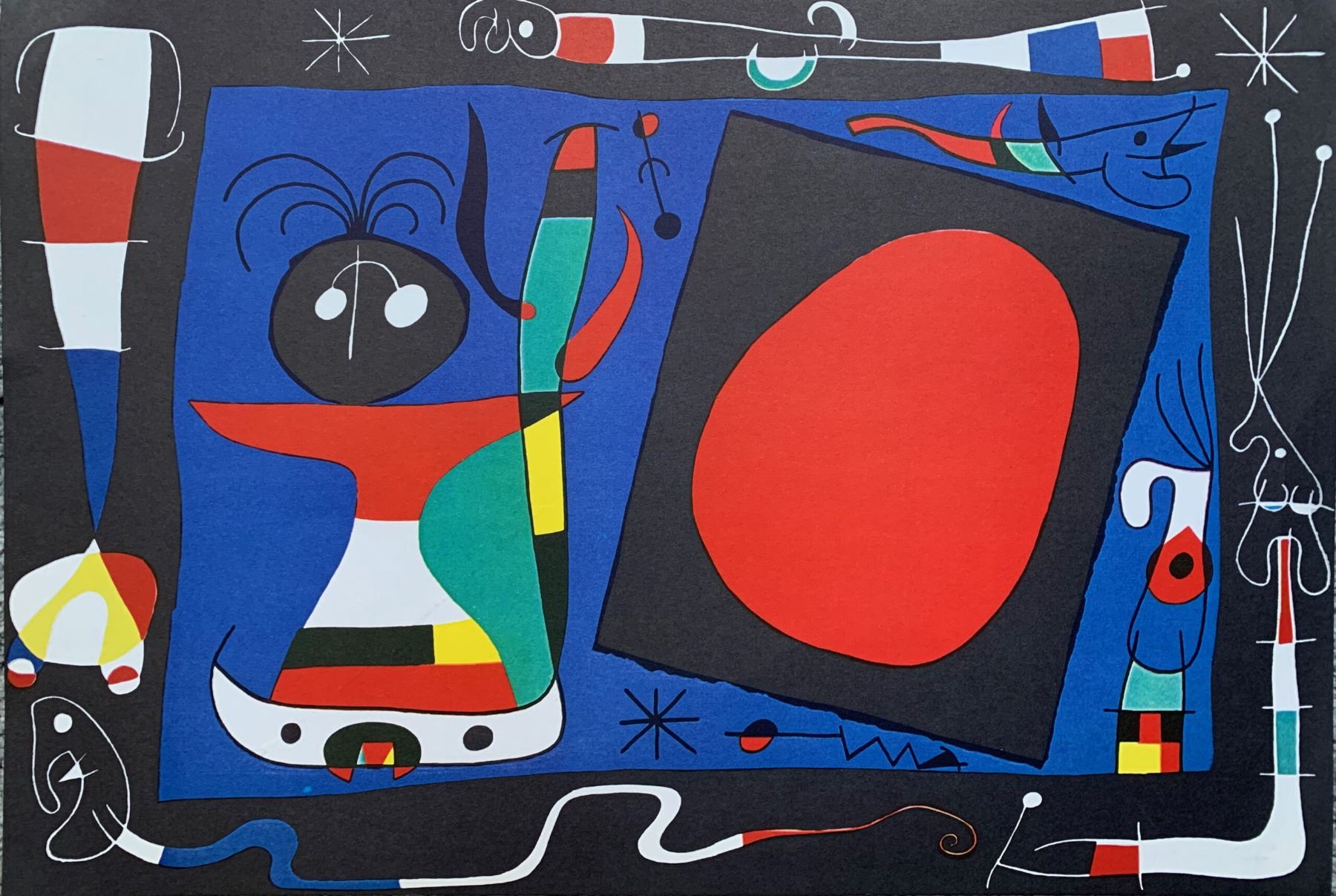 This is a Joan Miro lithograph titled “Woman At The Mirror” Or “Le Femme Au Miroir” This piece bears a faint signature in the plate. Reproduction edition of 1500. Measures 11-1/4? X 16-3/4?. Published in 1982. A very rich impression! This Lithograph Was Originally Printed In 1956 By Maeght For Derrière Le Miroir. Catalogue Reference: Mourlot 242. Nice condition. Comes unframed. Comes with a certificate of authenticity.