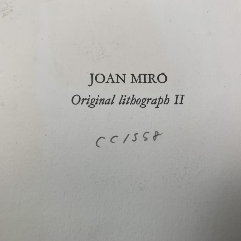 Joan Miro's "II" original lithograph on paper. Done in Miro's signature style, this piece is in excellent to mint condition.