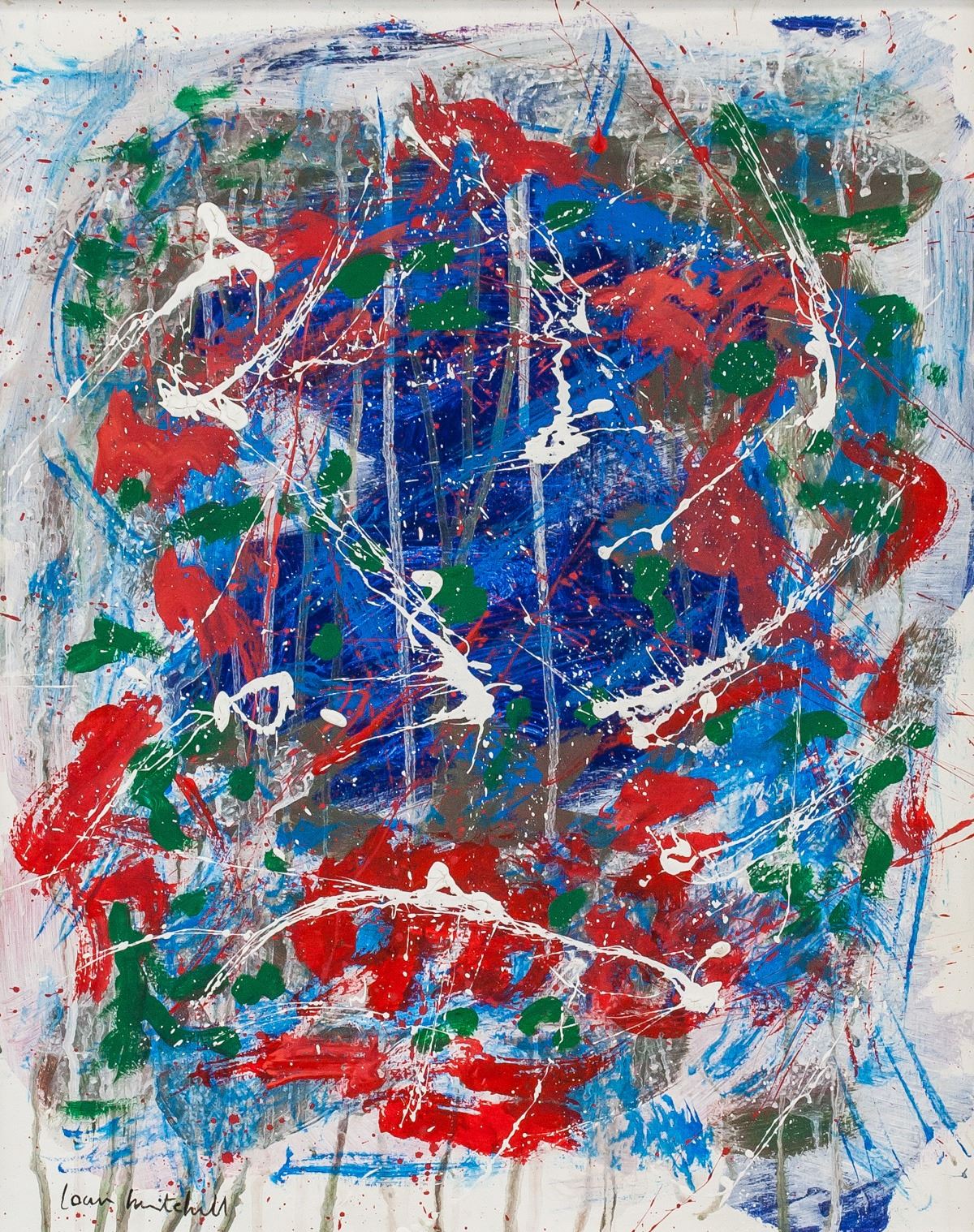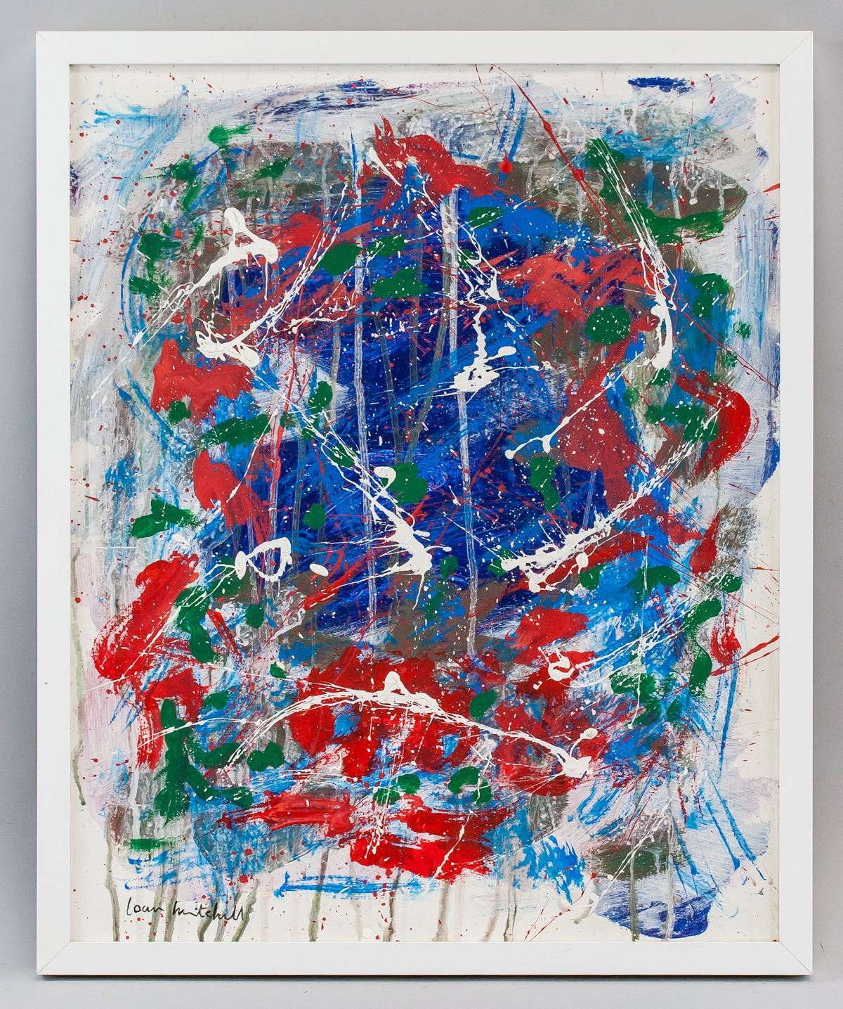 Oil on canvas, framed. Featuring an abstract expressionist composition. Signed Joan Mitchell on the lower left corner. Attributed to Joan Mitchell (1925-1992, American). 53.5 x 43.5 cm (21 x 17 inches). Framed size: 57 x 47 cm (22.5 x 18.5 inches). PROVENANCE: This lot carries limited provenance from an Eastern European estate