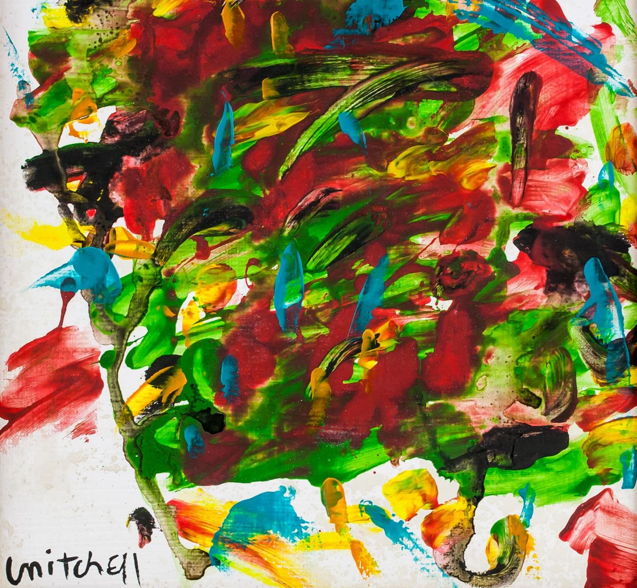 Oil on canvas, framed. Featuring an abstract expressionist composition. Signed mitchell on the lower left corner. Attributed to Joan Mitchell (1925-1992, American). 49 x 33 cm (19.5 x 13 in). Frame: 62 x 46 cm (24.5 x 18 in). Provenance: This lot carries limited provenance from a Southern Ontario estate