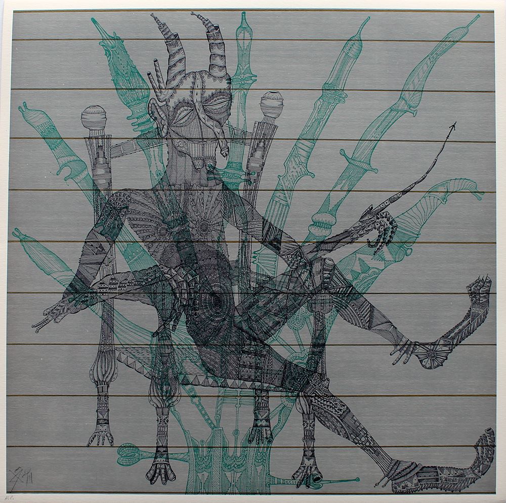 Joan Ponc. Diabolica 1. Limited edition lithograph. Hand signed and numbered by the artist. 20 x 20 inches. Comes with a certificate of authenticity