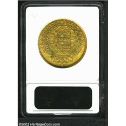 Joao VI Gold Peca 1824, KM364, AU58 ANACS, the obverse of this final year of type looks to have been struck from rusted dies. Important notice: We expect to be auctioning lots at the rate of 200-250 per hour. Sometimes eBay Premier live bid software cannot keep up with that pace, so we strongly recommend that you place a realistic proxy bid now as insurance to avoid disappointment. Also please note that all Heritage/CAA lots purchased through eBay Premier carry a 20% Buyer's Premium. Please make sure you read the Terms and Conditions.