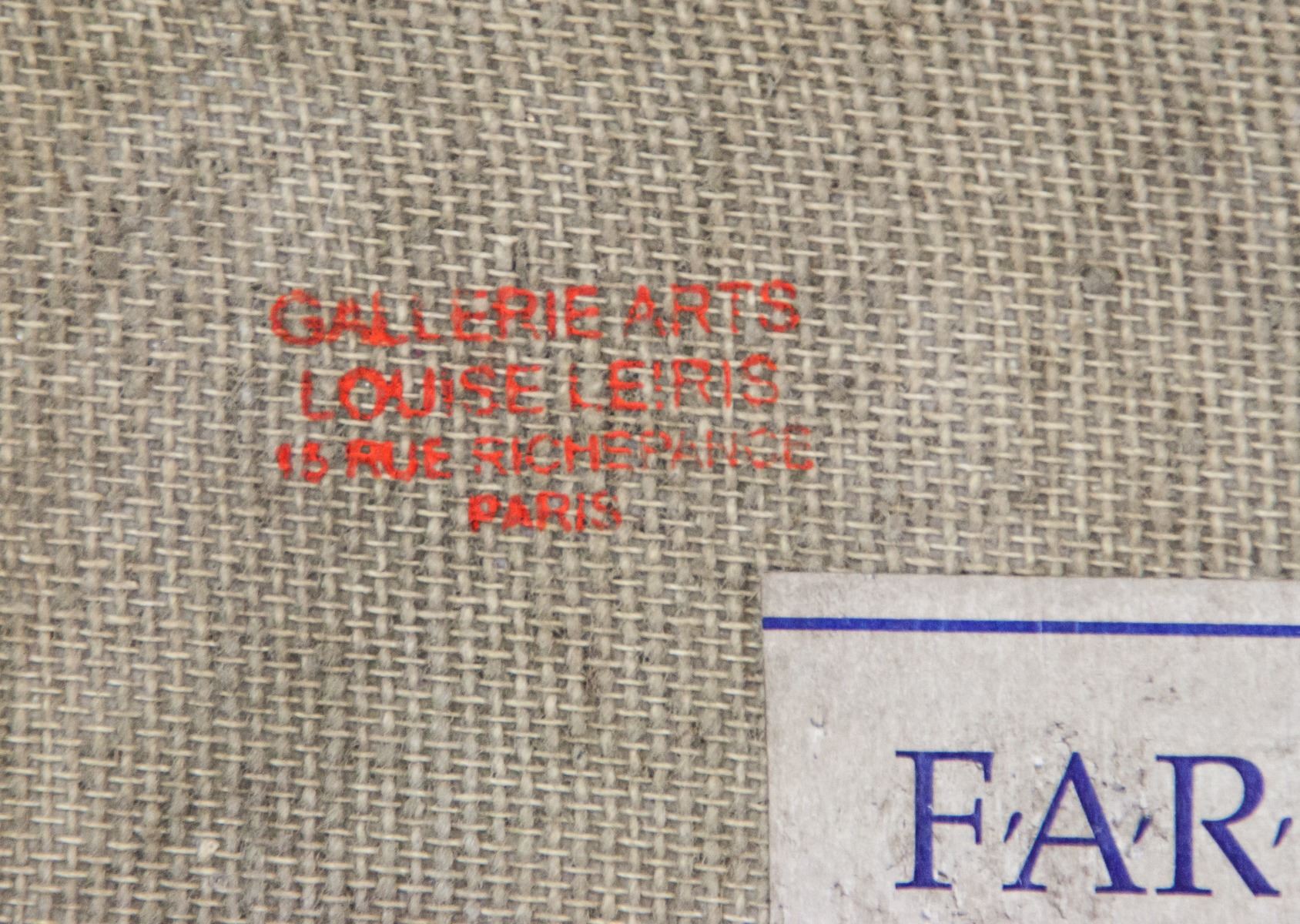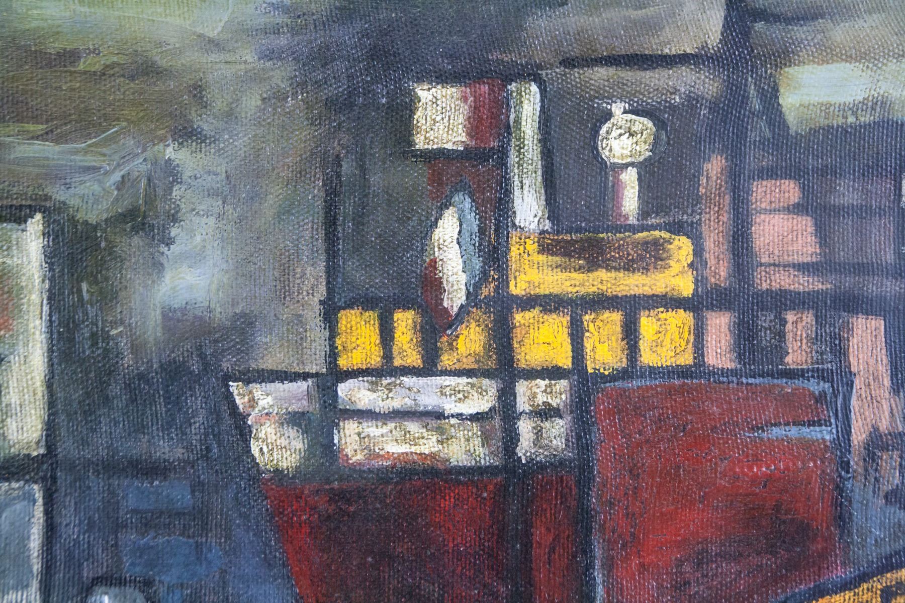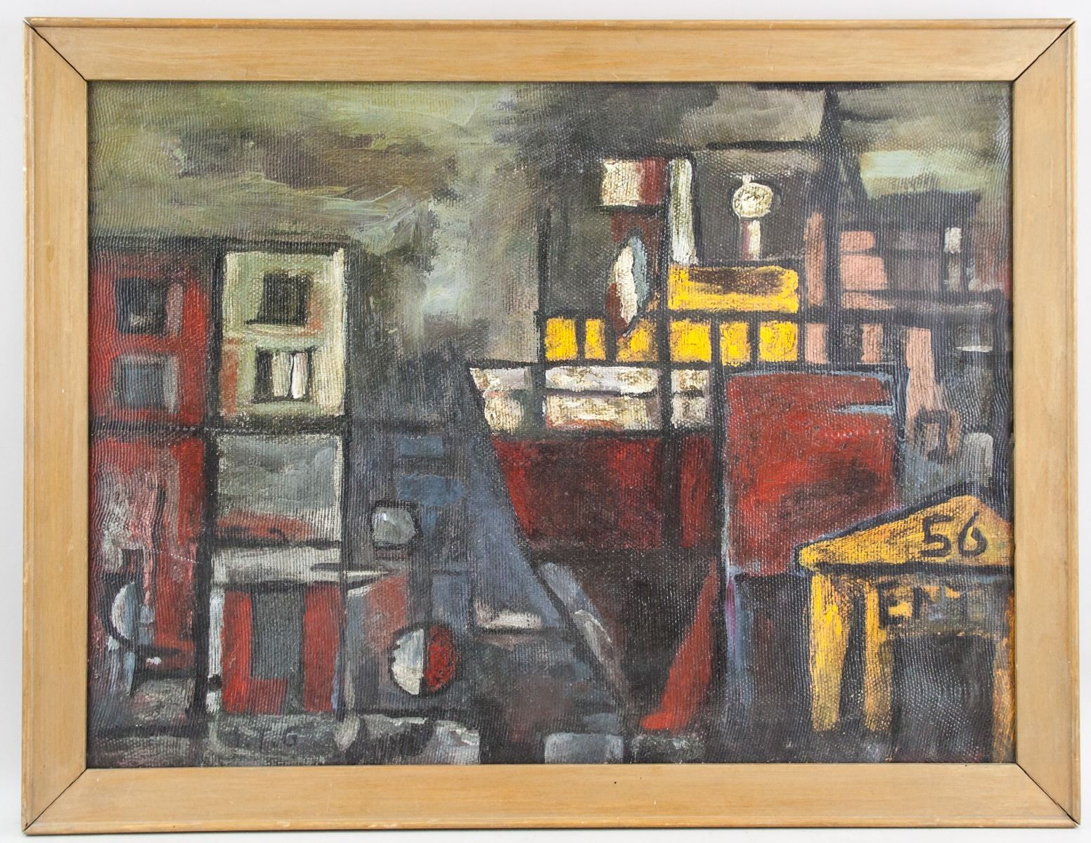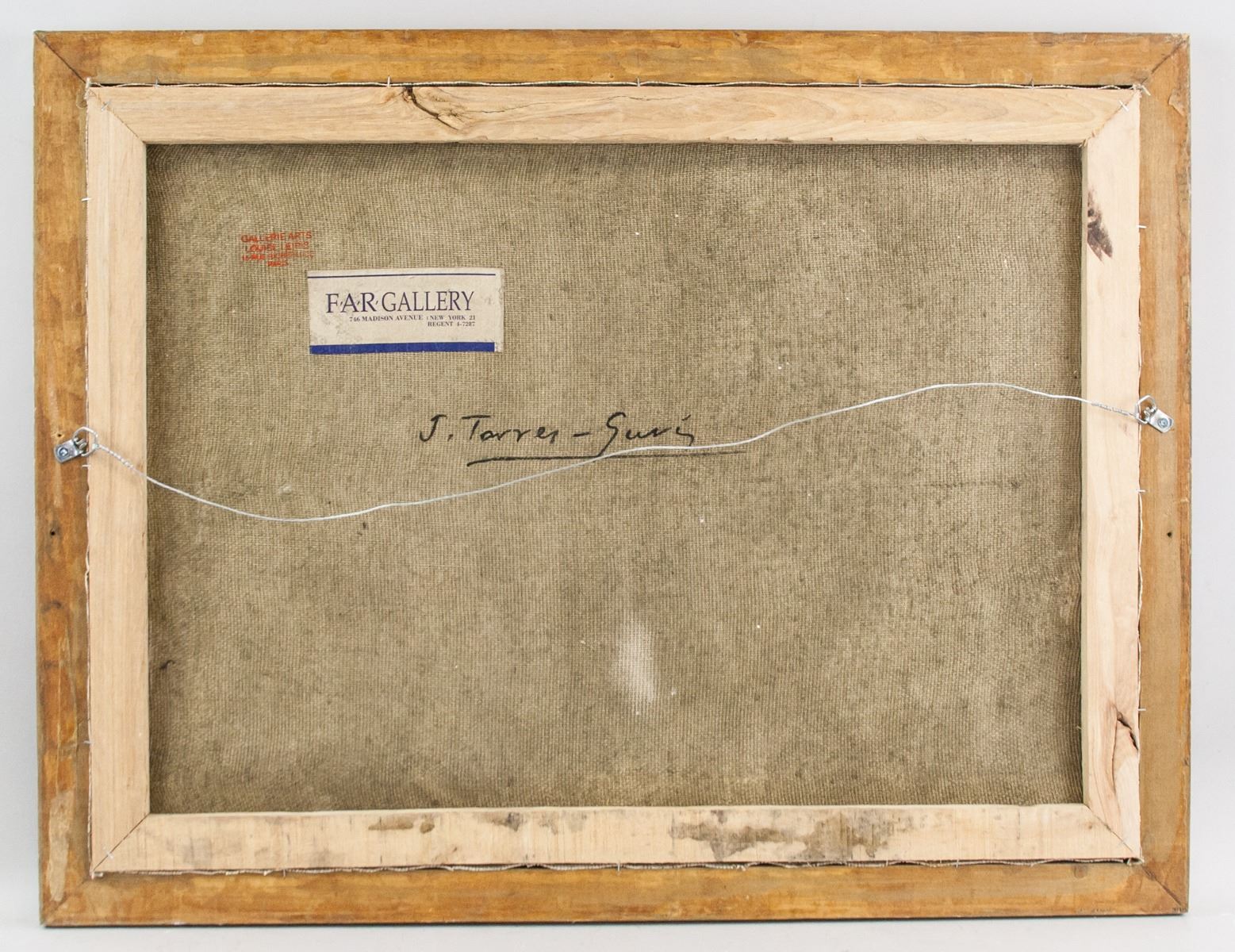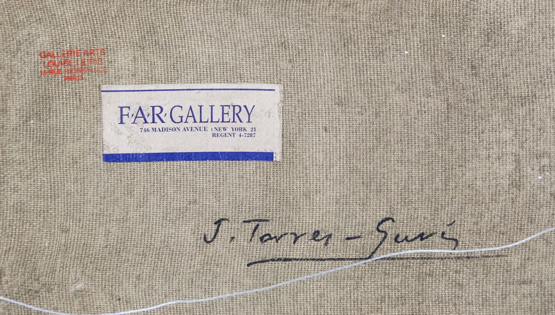 Oil on canvas, framed. Featuring a modernist urban landscape composition. Signed JTG on the lower left corner. Label affixed to verso inscribed FAR GALLERY / 746 MADISON AVENUE : New York 21 / REGENT 4-7287. Stamped GALLERIE ARTS / LOUISE LEIRIS / 15 RUE RICHEPANCE / PARIS on verso. Inscribed J. Torres-Garcia on verso. Attributed to Joaquin Torres-Garcia (1874-1949, Uruguayan). 43 x 57 cm (16.9 x 22.5 inches). Framed size: 50 x 65 cm (19.7 x 25.6 inches). PROVENANCE: Southern Ontario estate