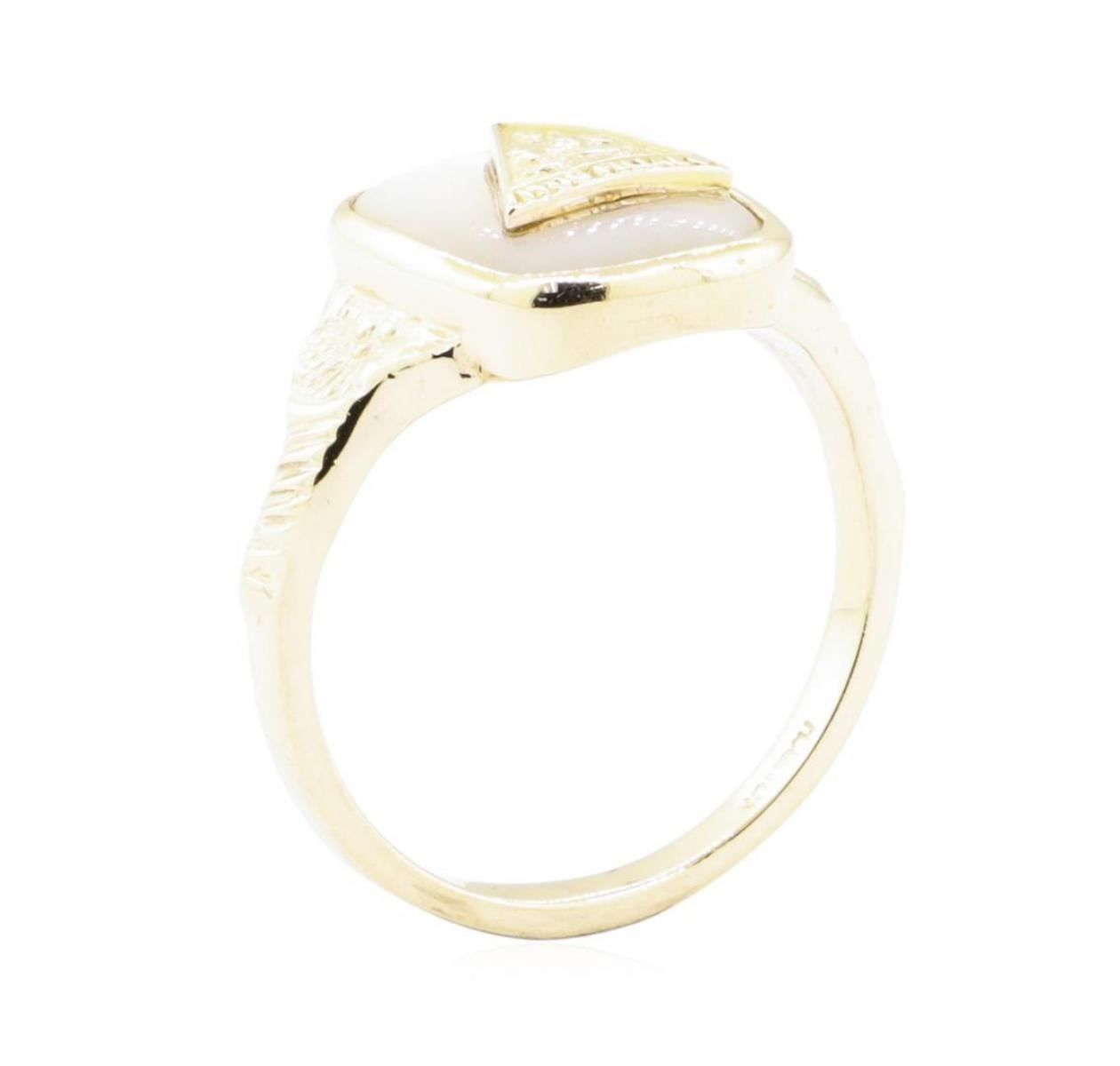 One Job's daughter ring featuring: 10KT yellow gold weighing 3.6 grams containing one inlaid piece of mother of pearl.