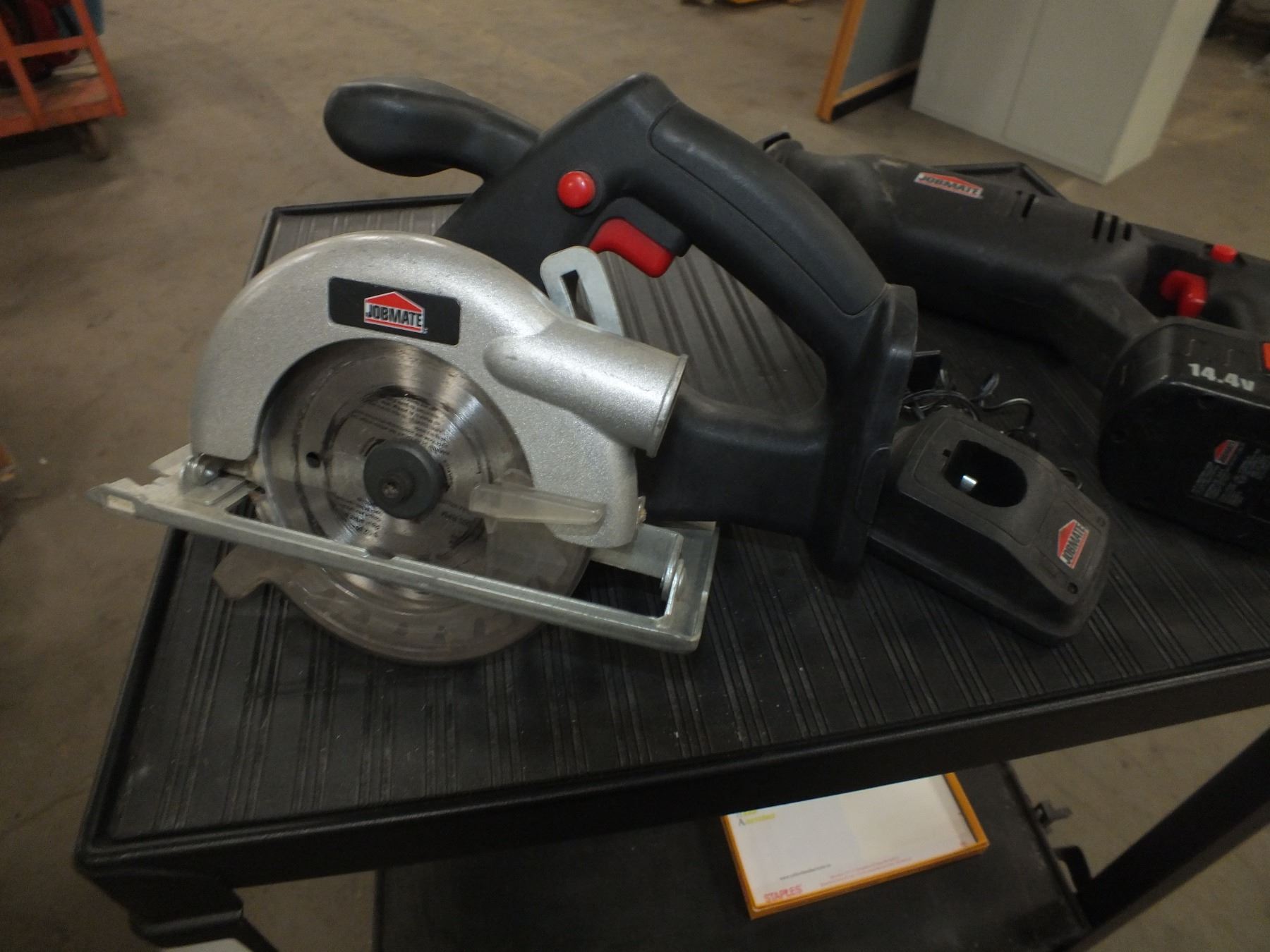 Jobmate Circular Saw & Sawzall, comes with 1 14.4 battery and 1 charger...Charger not in working condition...used