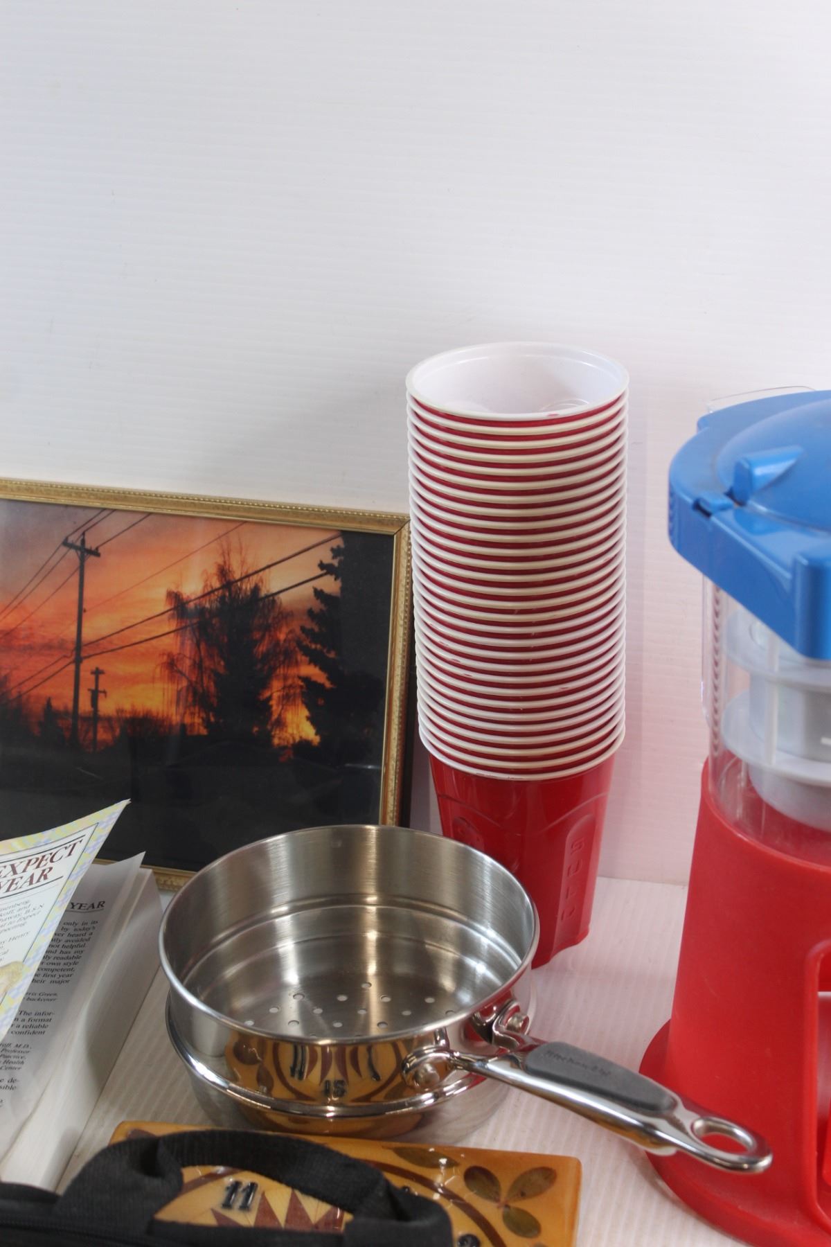Jobmate Tool Bag, Ice Maker Toy, Strainer, Wall Clock, Napkins and Assorted Items