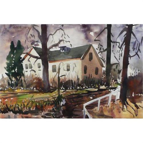 Joe Amore (20th) Estate House Watercolor Signed lower right 14 1/2" x 21 1/2"