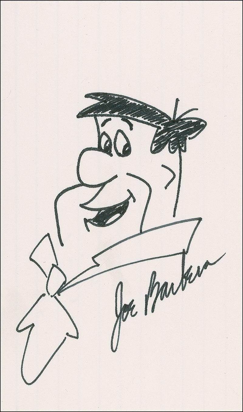 Original signed felt tip sketch of Fred Flintstone on an off-white 3 x 5 card. In very fine condition.