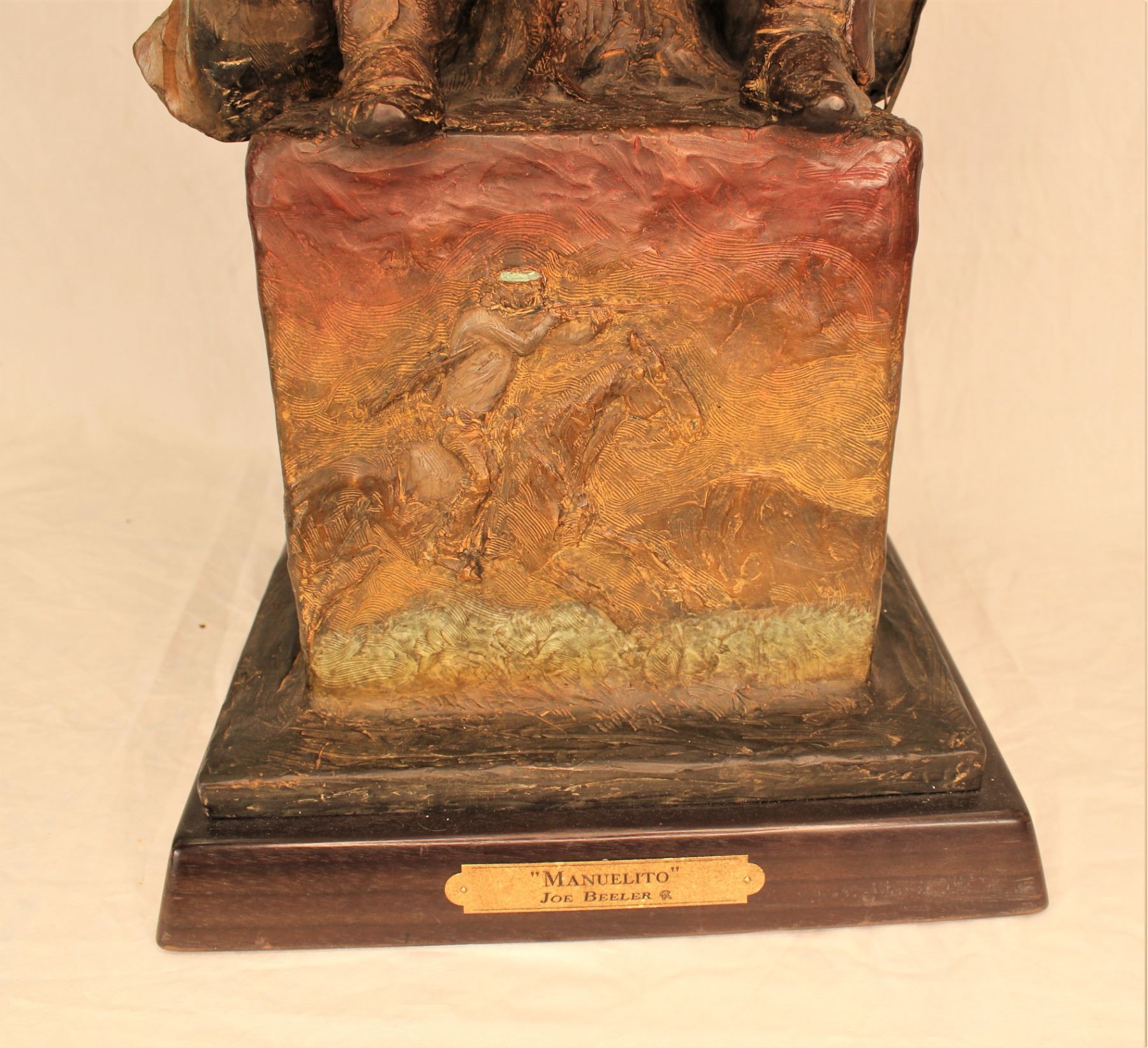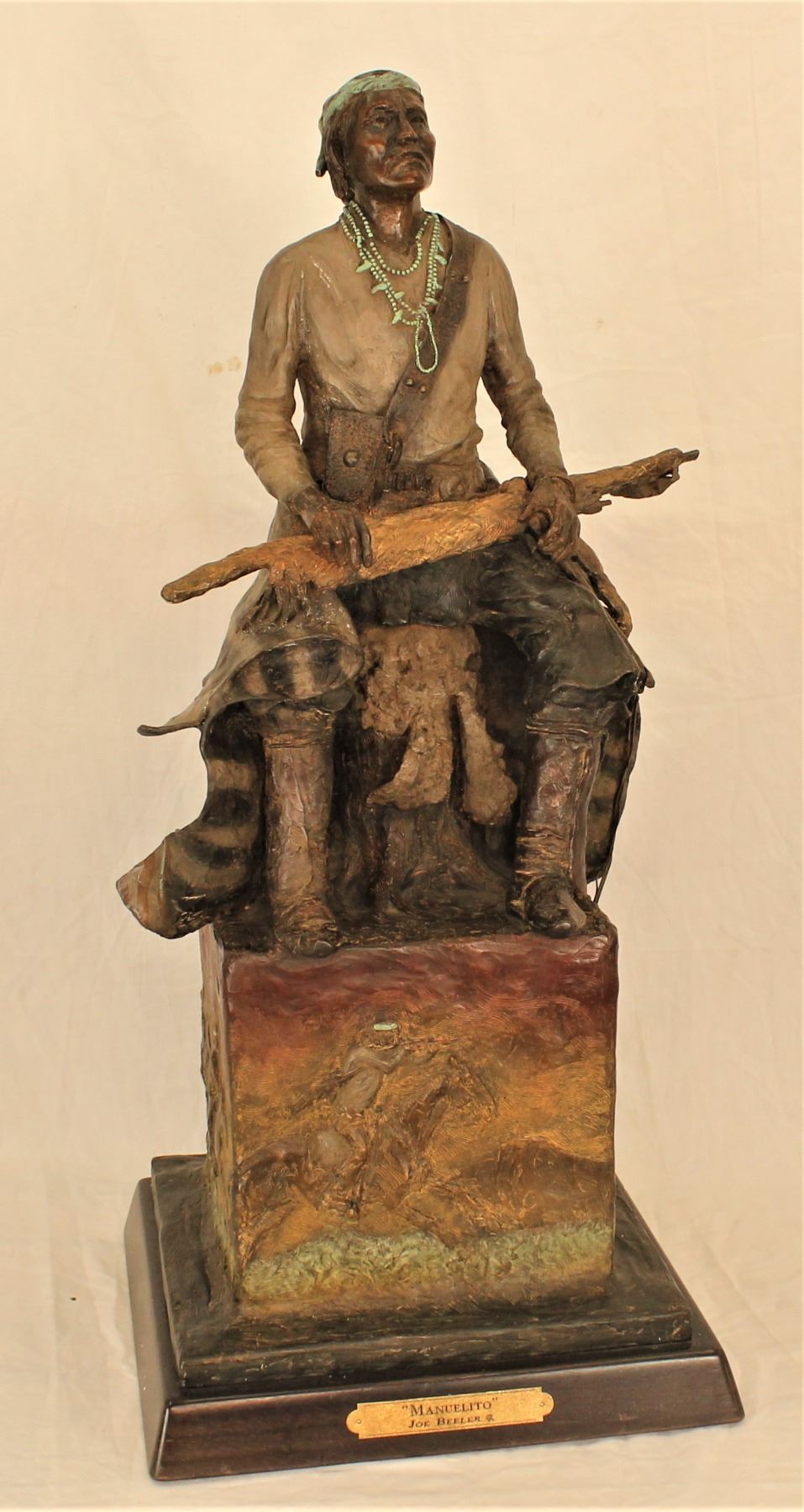 American (1931-2006), beautiful large color toned bronze titled "Manuelito", numbered 16/45, measurements 27 1/4"x 11 /12" x 11 1/4".