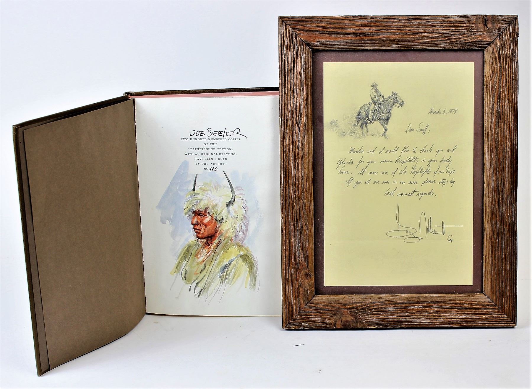 Collection of two items that includes an original Niblet illustrated letter dated 1978 to Snuff Garrett and a signed Joe Beeler "Cowboys and Indians" book with sleeve #110/200.