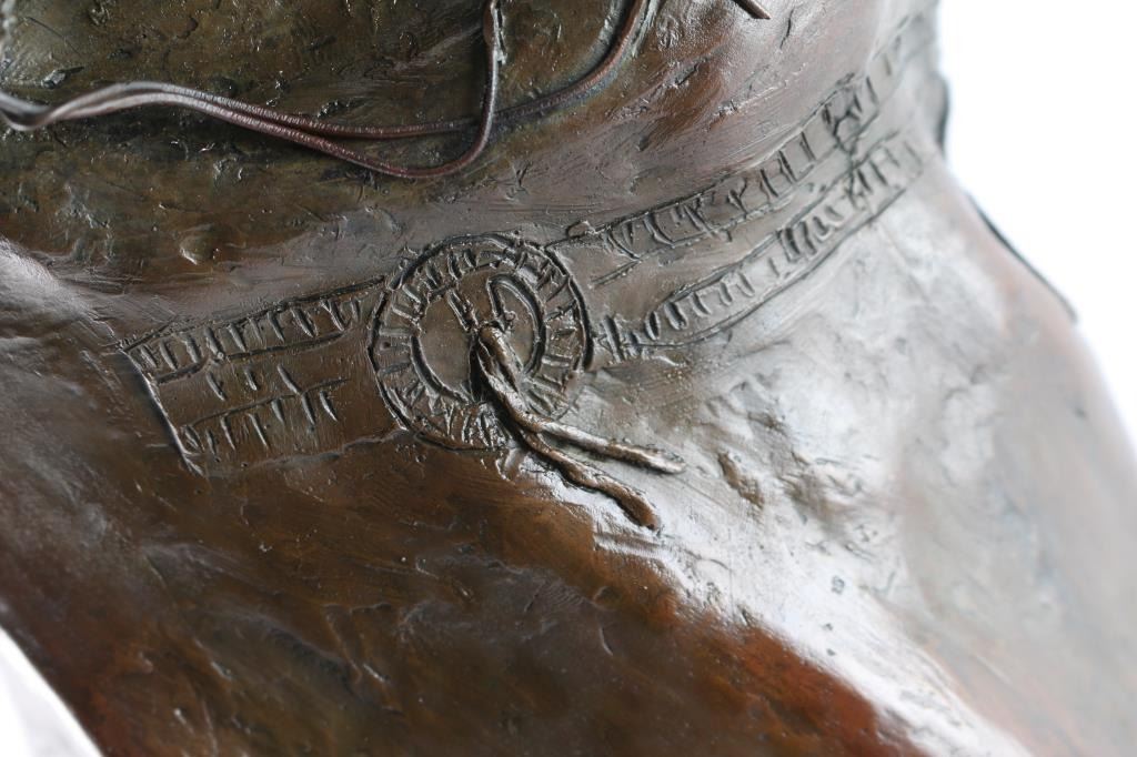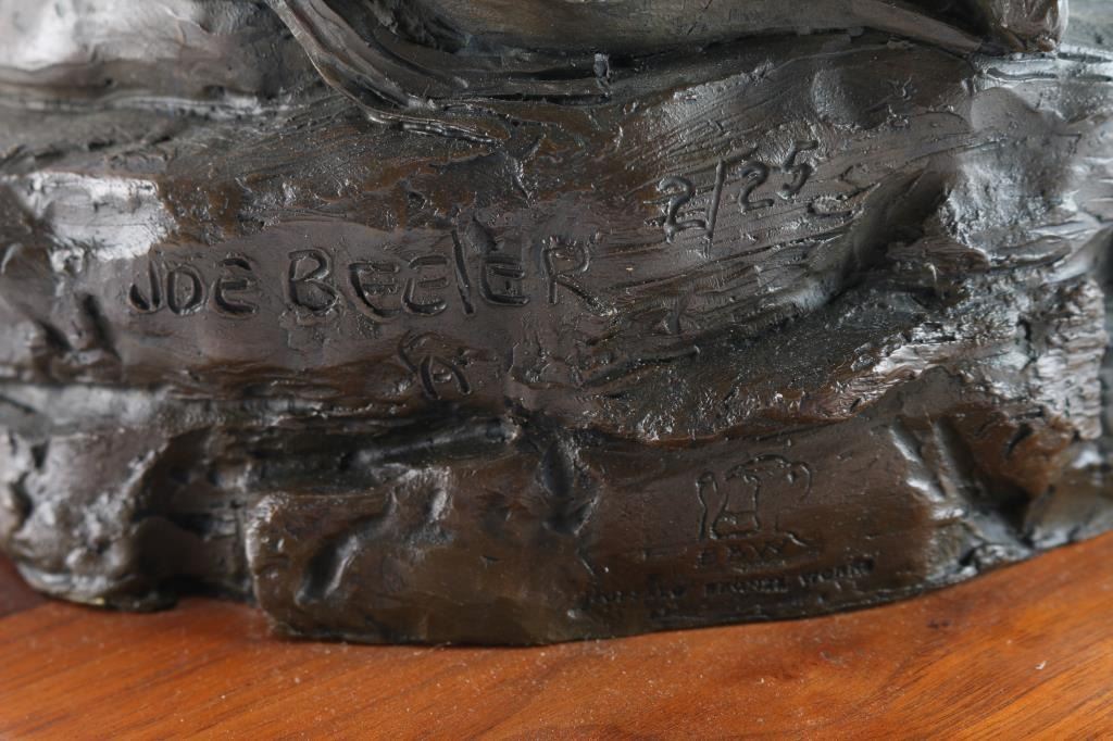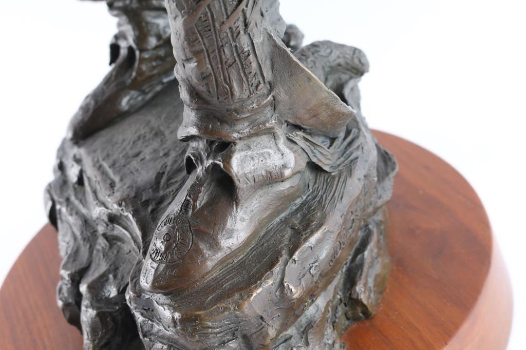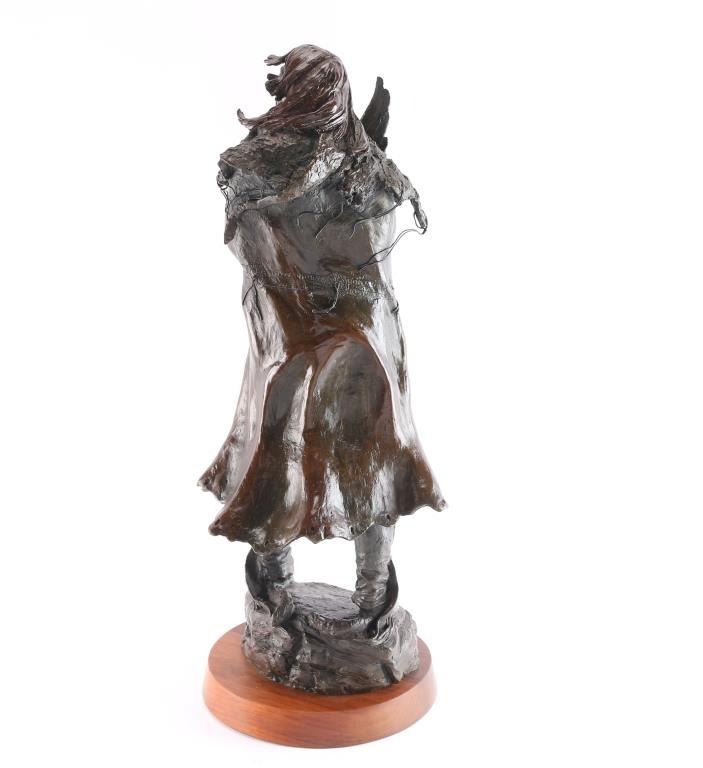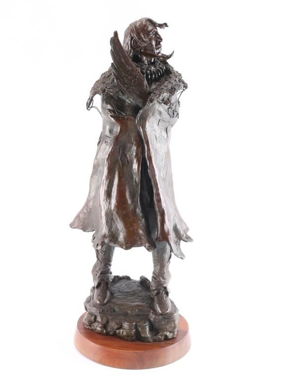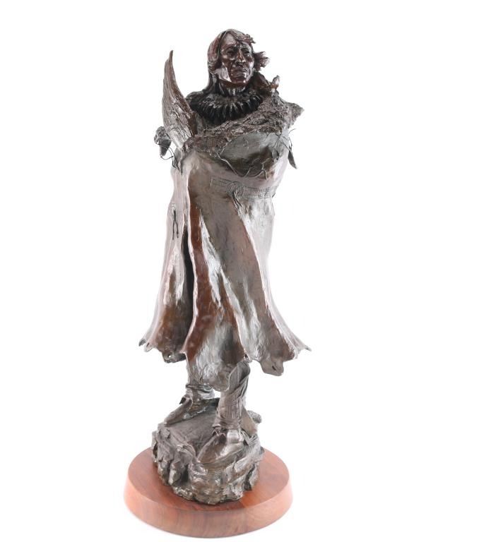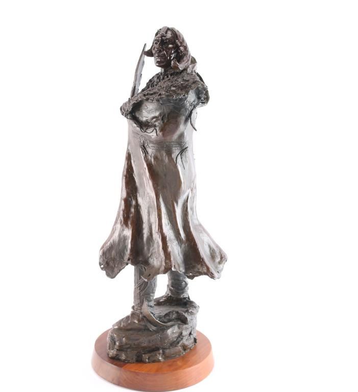 Of Native American in buffalo robe with claw necklace, 29" tall, numbered 2 of only 25 in edition. Co-founder of Cowboy Artist's of America. This real cowboy artist died in the saddle near Sedona, Arizona. Gallery priced at $8,000.