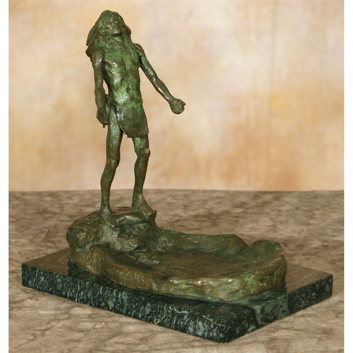 Joe Beeler (1931 - 2006) CA. Appeal to the Spirit. 7.75" x 7.25" x 4.75" bronze. Inscribed: JOE BEELER 2/30. Buffalo Bronze Works.