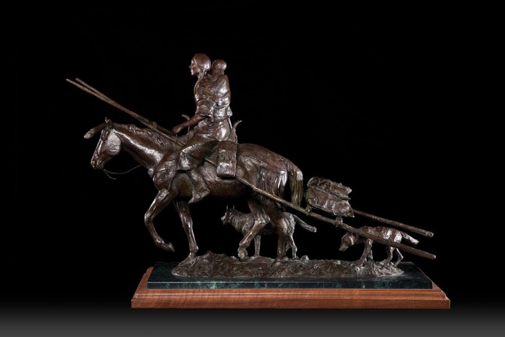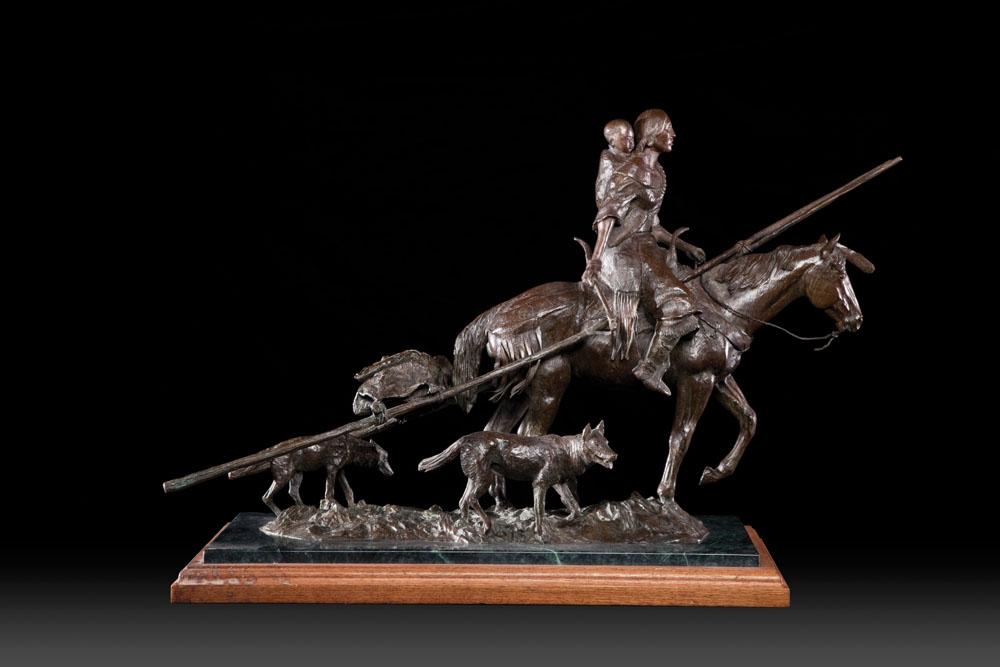 Prairie Madonna 18”h x 22”l x 9”d 2/35 Bronze on marble and wood base Signed in the base Joe Beeler CA Cast by Bronzesmith