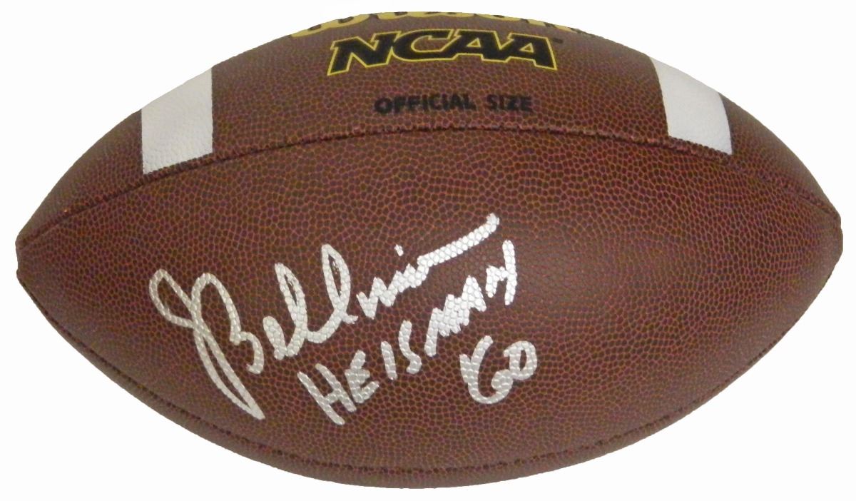 Joe Bellino signed Wilson NCAA full size football with 'Heisman 60' inscription. Item comes with a Schwartz Sports Memorabilia tamper-proof numbered hologram and Certificate of Authenticity which can be verified online.