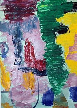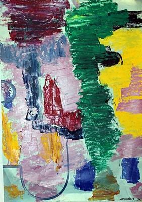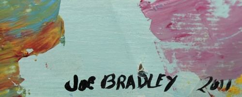 Oil on paper in the manner of Joe Bradley - Three Men Working, bearing the signature. Unframed dimensions approx 20 x 14.
