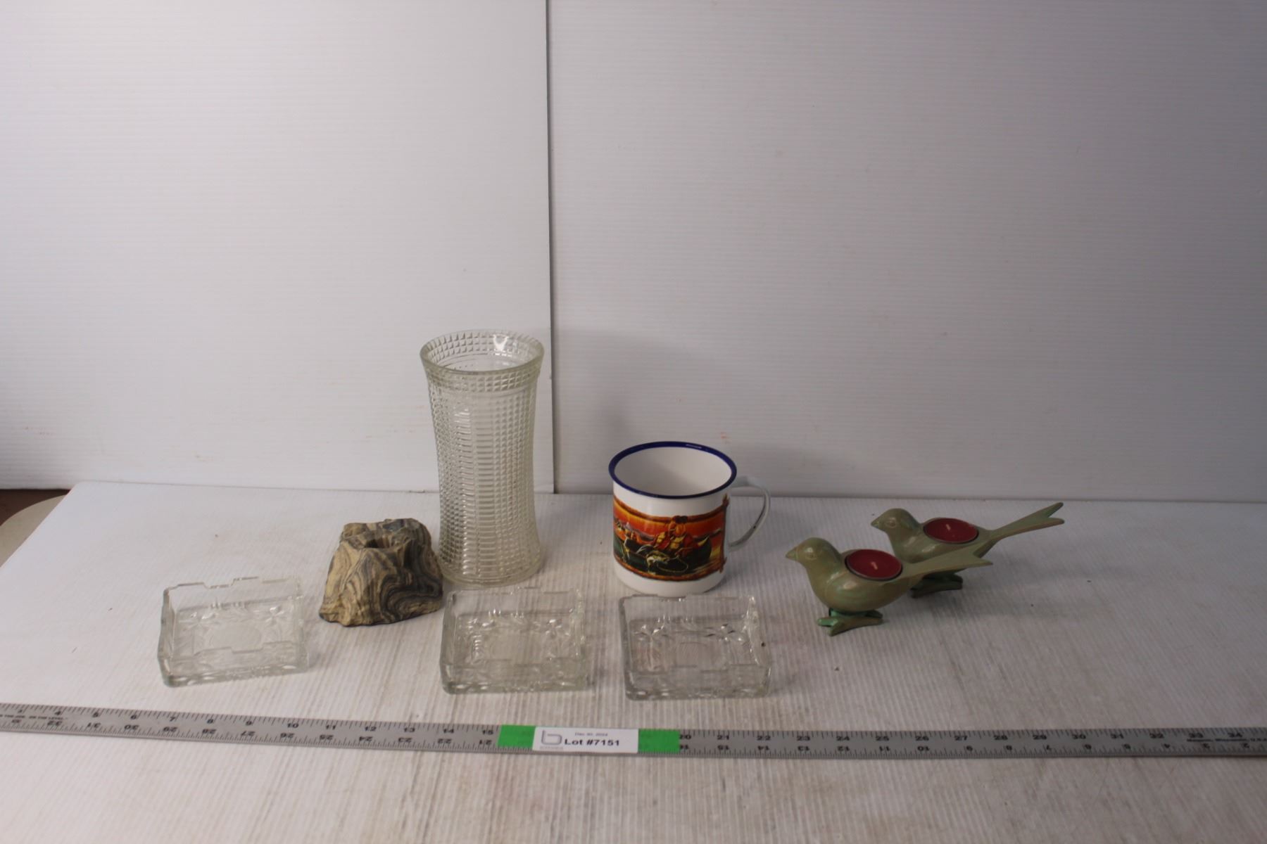 Joe Camel Mug, Glass Vase 7" Tall, Misc.