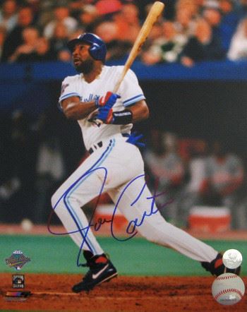 Joe Carter played in Major League Baseball as an outfielder and first baseman from 1983 to 1998. Carter is most famous for hitting a walk-off home run to win the 1993 World Series for the Toronto Blue Jays. Joe Carter has hand signed this Toronto Blue Jays 16X20 Photo from the 1993 World Series. MLB Hologram and Certificate of Authenticity from Athlon Sports Collectibles.