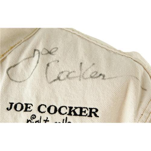<B>Joe Cocker Signed Tour Jacket.</B></I> A white denim jacket with "Joe Cocker Night Calls Australia/New Zealand 1992 Tour" embroidered on the left breast, signed above that by Cocker in black marker. In Excellent condition.<I>From the Robert Johnson Memorabilia Collection.</B></I><BR><BR><b>Shipping:</b> Clothing, Costumes & Jerseys (<a target="_blank" href="http://www.heritageauctions.com/common/shipping.php">view shipping information</a>) <BR><BR><B>Important notice:<