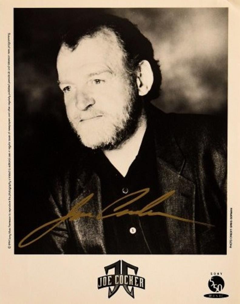 Sony promotional photo autographed by Joe Cocker. 8x10 inches. This item is a reprint of an original autograph