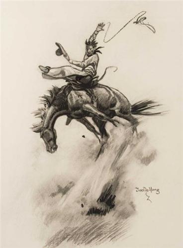 Joe DeYong (1894-1975). 24" x 18". Charcoal Drawing. "Eaton Ranch Brand Horse". (est $5,000-6,000)