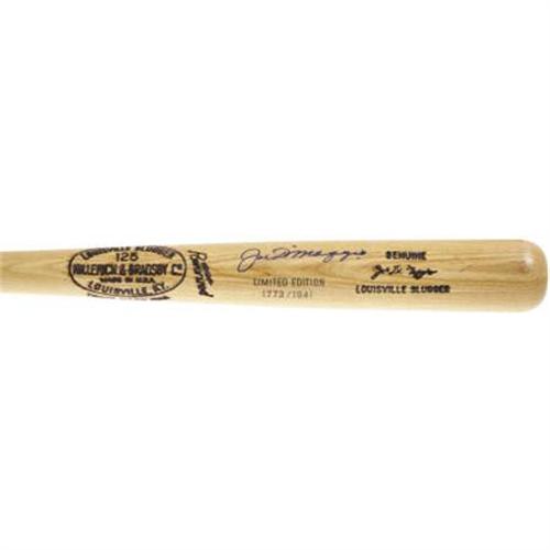 <B>Joe DiMaggio Signed "1941" Bat. </B></I> The most desirable of Joltin' Joe autographed lumber is represented here as number 1773 of a limited edition of 1941, a figure which should bring to mind the historic fifty-six game hitting streak to all but the most casual baseball historian. Exacting in every detail to the signature model Hillerich & Bradsby wielded by the Yankee great during that campaign, this one differs only in the edition stamping and the 9+/10 blue sharpie signature that resides just above. <I>LOA from PSA/DNA. LOA from James Spence Authentication.</B></I> <BR><BR><b>Shipping:</b> Bats, Clubs, Sticks, Swords, Rif (<a target="_blank" href="http://www.heritageauctions.com/common/shipping.php">view shipping information</a>)