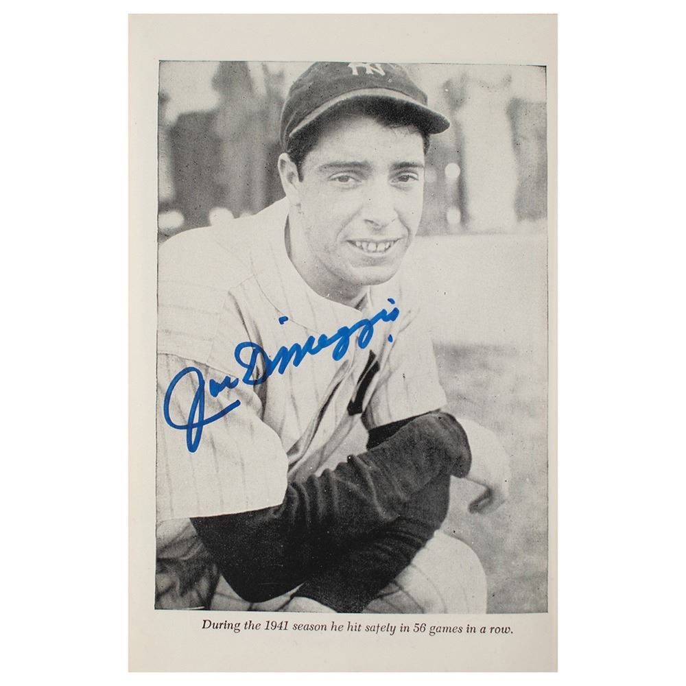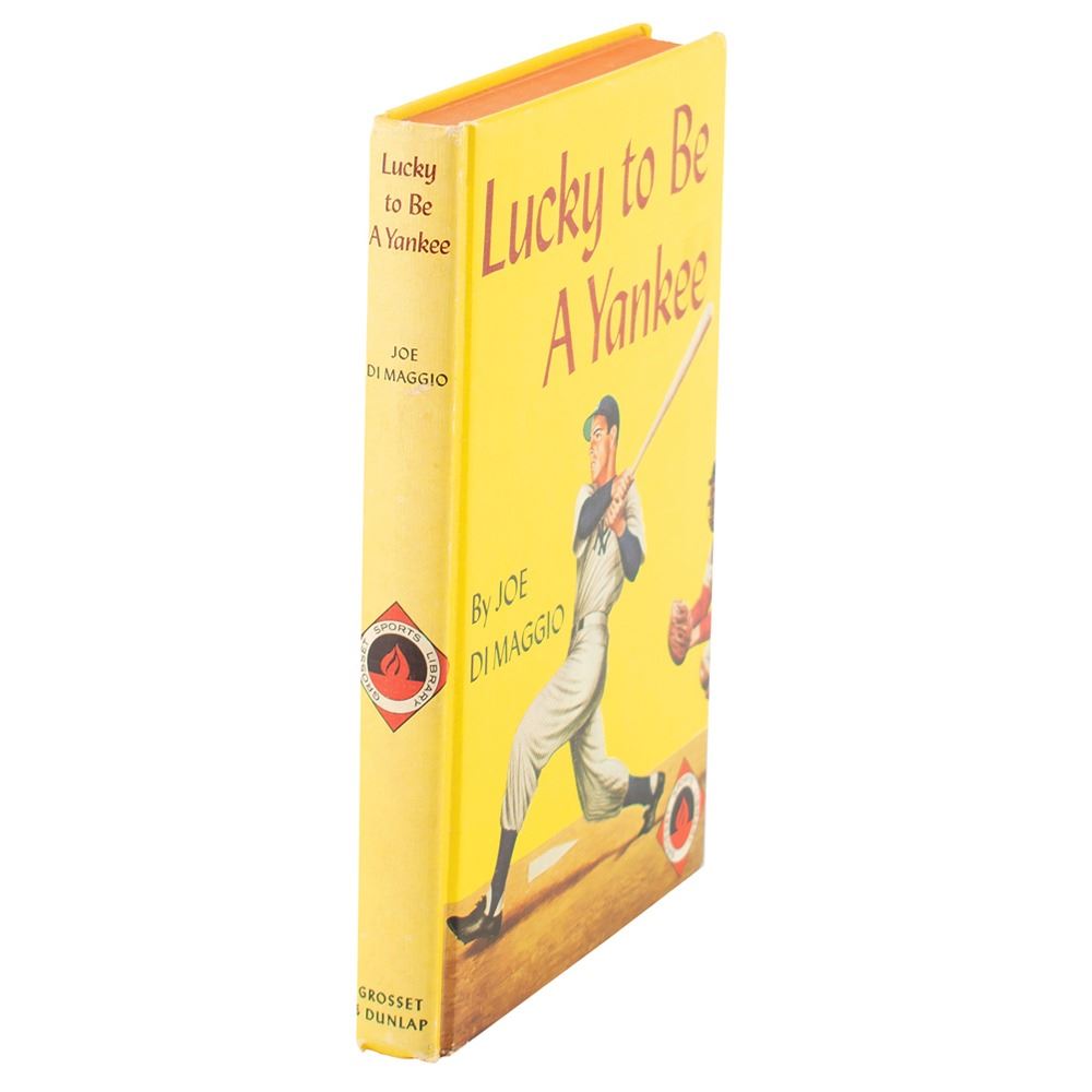 Signed book: Lucky to Be A Yankee. Later printing. NY: Grossett & Dunlap, 1957. Hardcover, 5.25 x 7.75, 221 pages. Signed on the frontispiece portrait in blue felt tip by Joe DiMaggio. In fine condition, with light sunning to the spine.