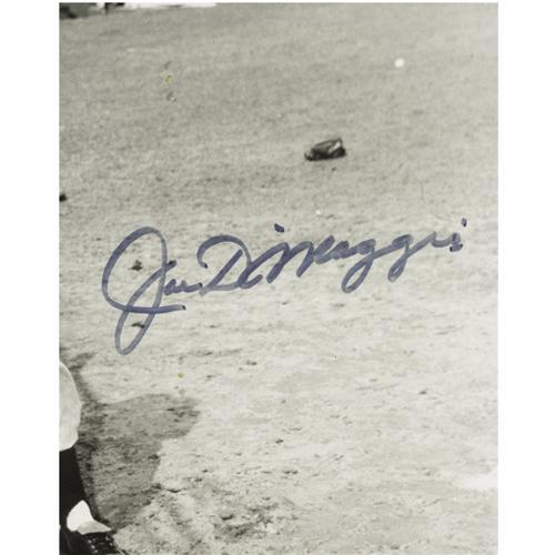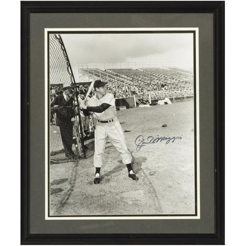<B>Joe DiMaggio Signed Large Photograph.</B></I> Another rarely seen image of the Yankee Clipper, expanded to imperial dimensions of 16x20", and signed by the man at the plate in perfect blue sharpie. A masterful matting and framing job expands the final dimensions of this fine piece to 22x26". <I>LOA from PSA/DNA.</B></I><BR><BR><b>Shipping:</b> Framed (<a target="_blank" href="http://www.heritageauctions.com/common/shipping.php">view shipping information</a>)