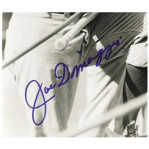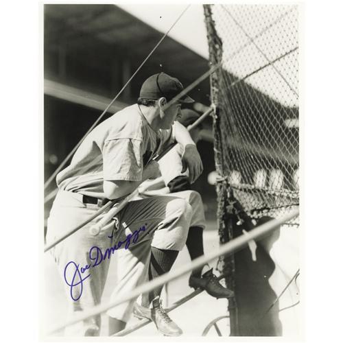 <B>Joe DiMaggio Signed Large Photograph by Brace.</B></I> The owner of baseball's sweetest swing advises his teammates in this fine image by famed baseball shutterbug George Brace, who began his apprenticehood under legendary photographer George Burke in the late 1920's. The 11x14" photo is printed from the original negative, resulting in unparalleled image quality. Likewise flawless is DiMaggio's 10/10 blue sharpie autograph at lower left. <I>LOA from PSA/DNA. LOA from James Spence Authentication.</B></I><BR><BR><b>Shipping:</b> Small Flat (<a target="_blank" href="http://www.heritageauctions.com/common/shipping.php">view shipping information</a>)