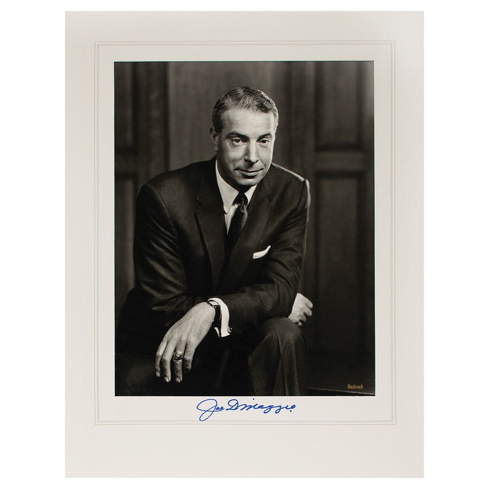 Striking oversized matte-finish 10.25 x 13.25 Bachrach portrait of Joe DiMaggio presented in its original 14 x 18.25 mat, signed on the mat in blue felt tip, "Joe DiMaggio." In very fine condition. Accompanied by the original Bachrach folder.