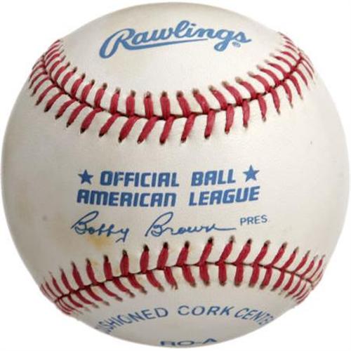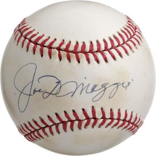 <B>Joe DiMaggio Single Signed Baseball.</B></I> Joe D made many fans in Gotham and beyond due to his classic swing and seemingly effortless prowess at the centerfield position. All this was good enough to earn him the honor of the game's greatest living player in 1969. The OAL (Brown) orb we see here has been penned with Joltin' Joe's recognizable sig on the sweet spot. Scattered areas of light foxing affect this baseball, but they do not do much to take away from the visual appeal of this piece. <I>LOA from PSA/DNA.</B></I><BR><BR><b>Shipping:</b> Requires 3rd Party Shipping (<a target="_blank" href="http://www.heritageauctions.com/common/shipping.php">view shipping information</a>)