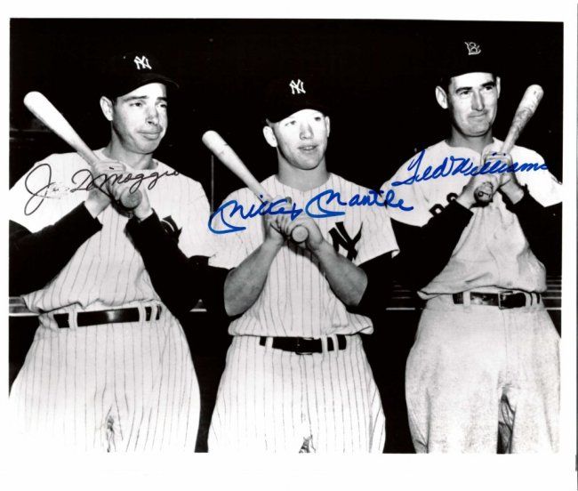 Joe DiMaggio, Ted Williams and Mickey Mantle Signed 8 x