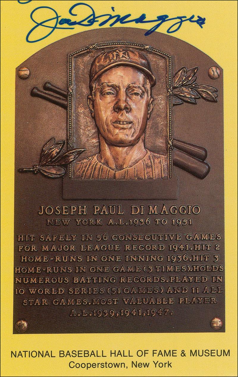 Gold Hall of Fame plaque card signed across the top in blue felt tip. In fine condition, with a stray ink mark to top edge.