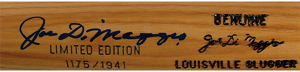 Official Louisville Slugger limited edition baseball bat, #1175/1941, signed in blue felt tip on the barrel. In very fine condition. Accompanied by a notarized certificate of authenticity bearing a photo taken at time of signing.