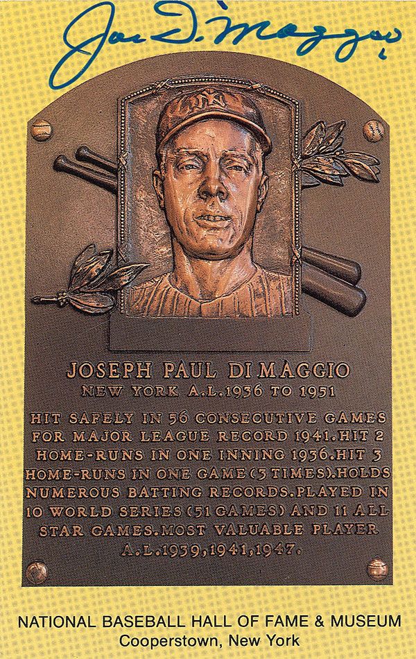 Gold Hall of Fame plaque card signed across the top in blue felt tip. In fine condition.
