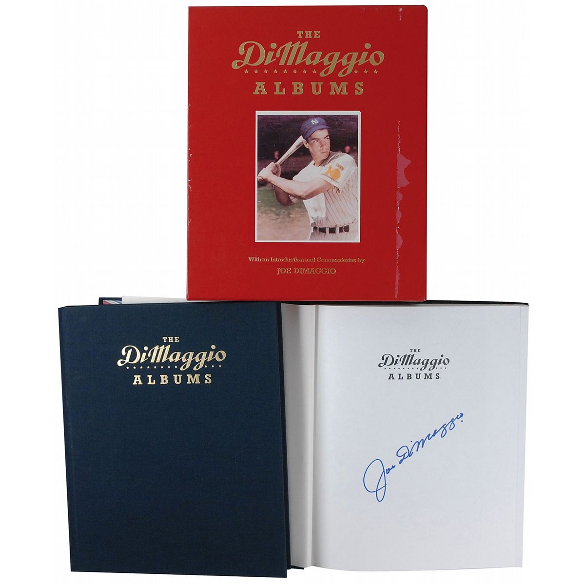 Signed book: The DiMaggio Albums Volumes I & II. First edition, first printing. NY: G. P. Putnam’s Sons, 1989. Two hardcover volumes in slipcase, 9.25 x 11.25. Signed in blue felt tip on the half-title page of Volume I. In fine condition, with a crease to the first free end page.