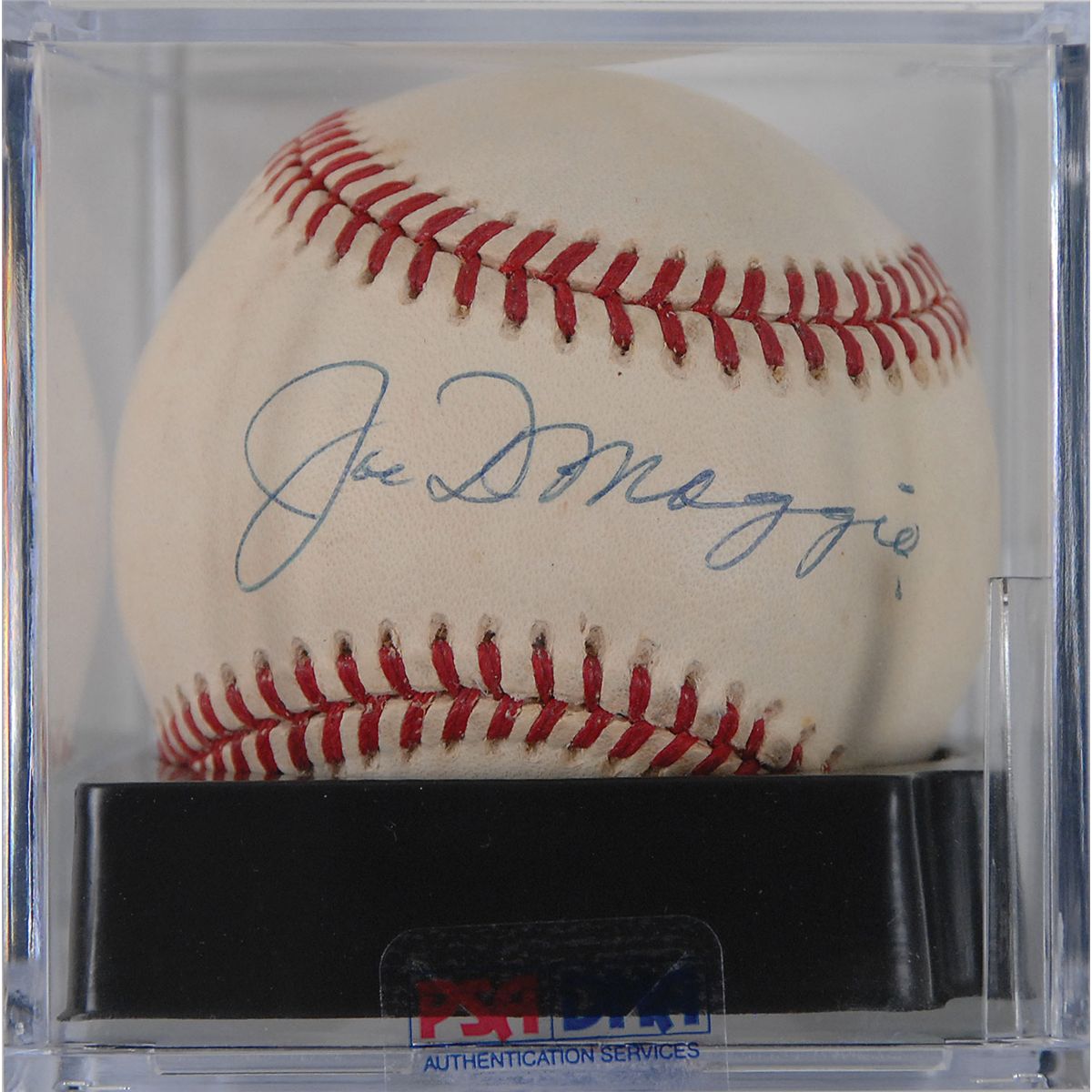 Official Rawlings American League baseball signed in blue ballpoint on the sweet spot. Encapsulated in a plastic PSA/DNA authentication holder. In fine condition. Accompanied by a full letter of authenticity from PSA/DNA grading the overall item a “7.5.”